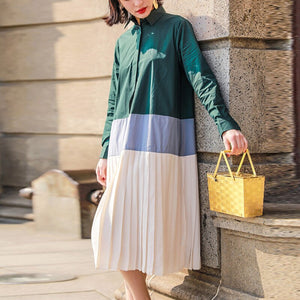Plus Size Fashion Pleated Shirts Dress Women's Color-block Long Blouse Autumn Long Sleeve Patchwork Shirt Dress Female Blusas  - Regular price