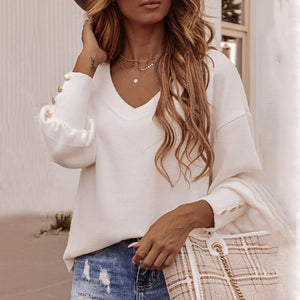 Autumn Women Shirts V Neck Solid Color Lace Patchwork Long Sleeve Pullover Shirts Lady Tops Plunging Collar Casual Offcie Lady  - Regular price