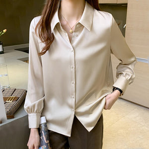 Women Chic Solid Shirt Office Ladies Casual Turn-down Collar Tops And Shirts Female Korean Long Sleeves Loose Blouses