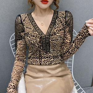 2021 Autumn Elegant Y2k Female Blouse Leopard Korean Fashion Casual Shirts Women Long Sleeve High Street Designer Vintage Blouse