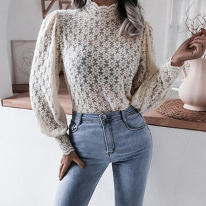 Vintage Floral Lace Blouse Lantern Sleeve Women Casual Long Sleeve Female Elegant Casual Tops Shirt Streetwear Ladies Blouses