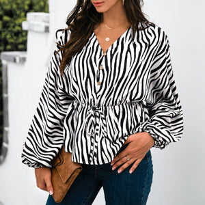 Fashion Women Shirt Long Sleeve Lantern Casual Elegant Floral Print Blouse V Neck Tops 2021 Stylish Chic Refreshing Shirts