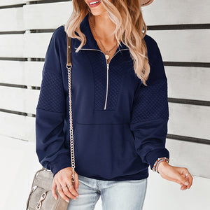 2021 Autumn Pullovers Solid Warm Turn-down Collar Long Sleeves Waffle-knit Comfy Tunic Sweatshirts Casual Loose Solid Color Tops
