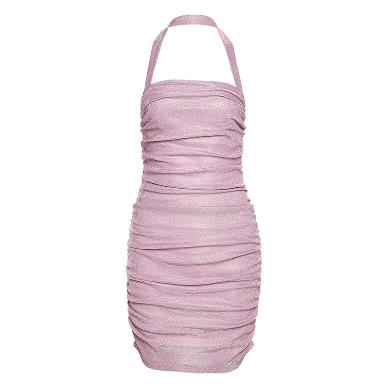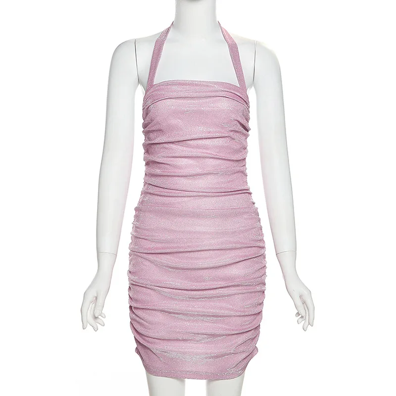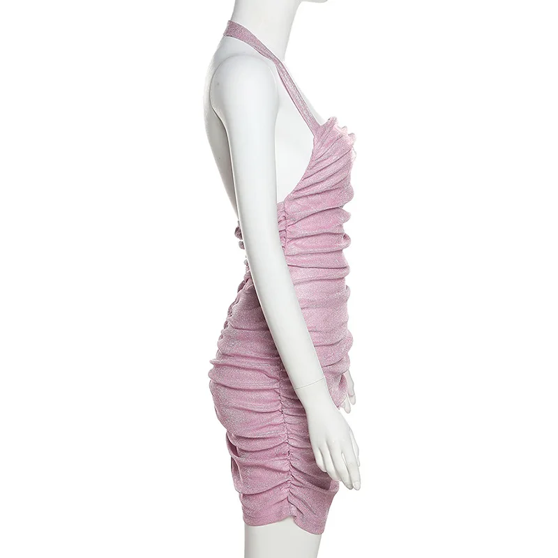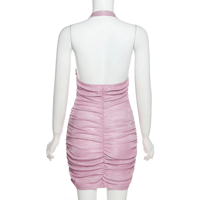 2022 For Summer Women's Clothes Pink Sexy Halter Backless Mini Dress Club Party Outfits for Sleeveless Elegant Prom Straps Dress