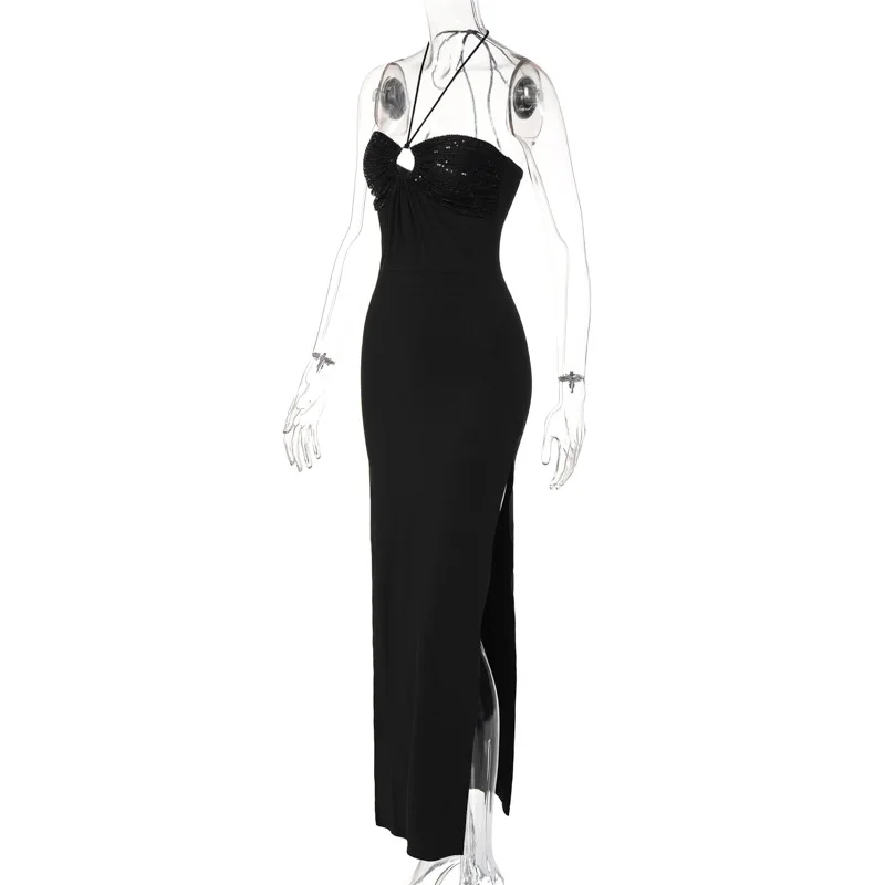 2022 Sequins Sexy Halter Cutout Gown Elegant Maxi Dress for Women Summer Club Party Outfits Backless Long Dress Vestido