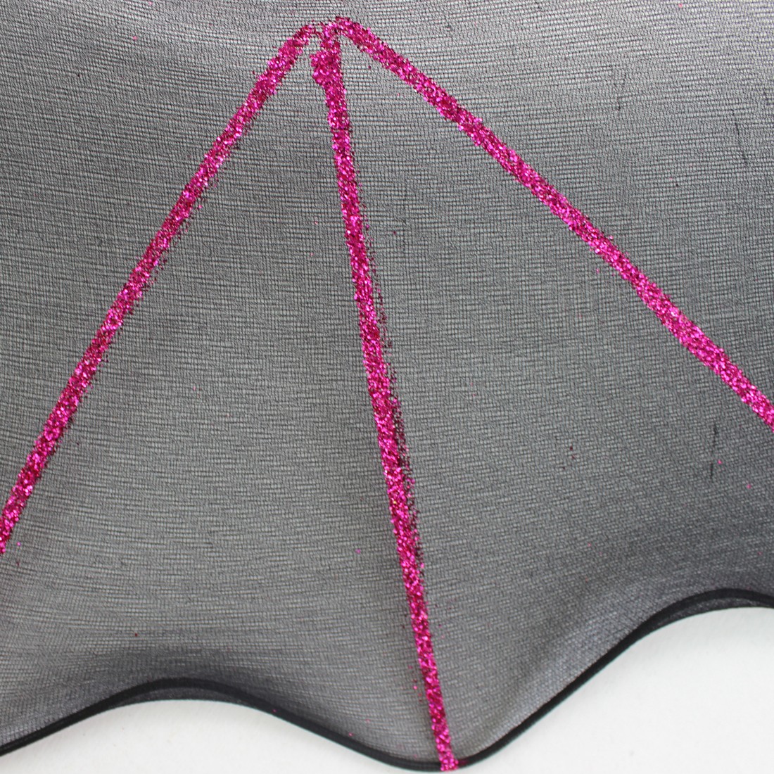 Round neckline, short mesh cap sleeves, top front with attached ruched mesh and mesh with bat pattern in the middle.