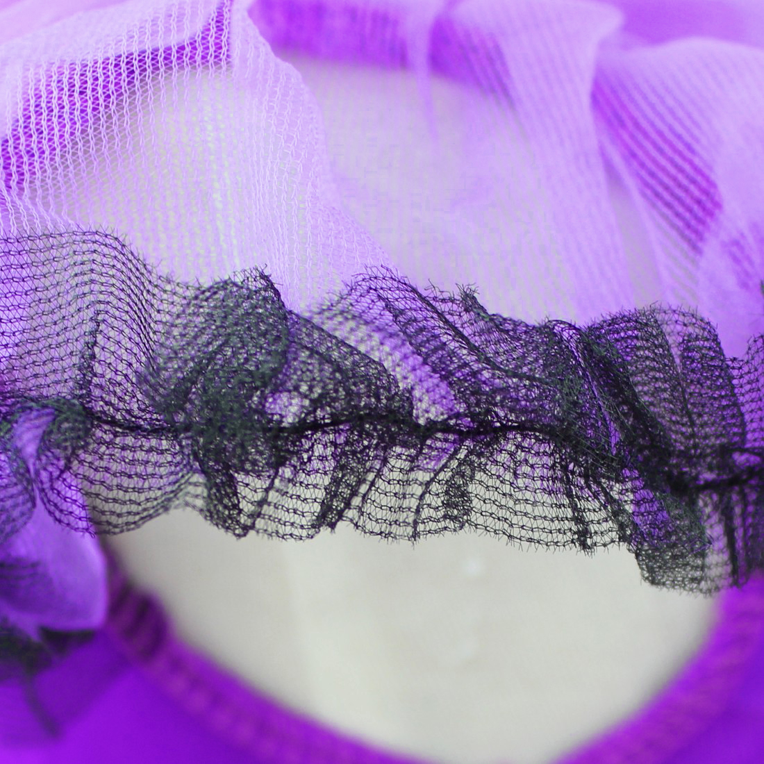 2 layers skirt, top mesh in purple and black and 1 lining.