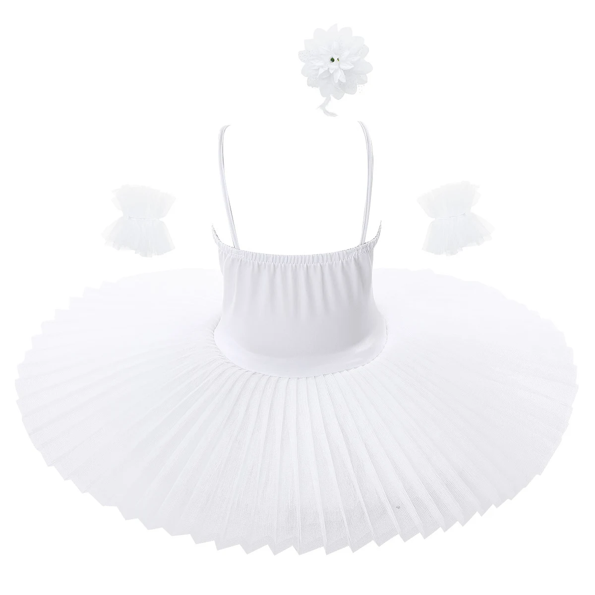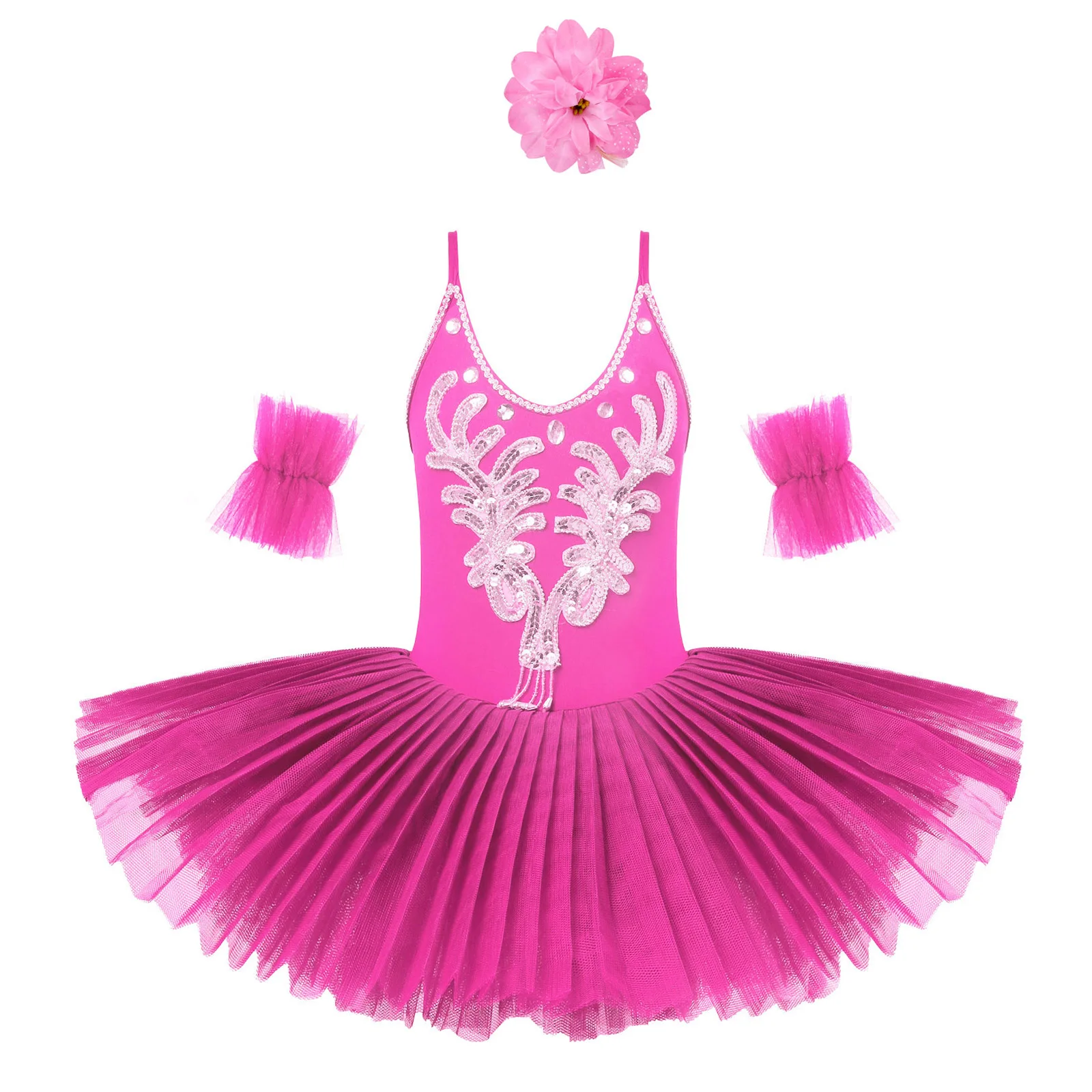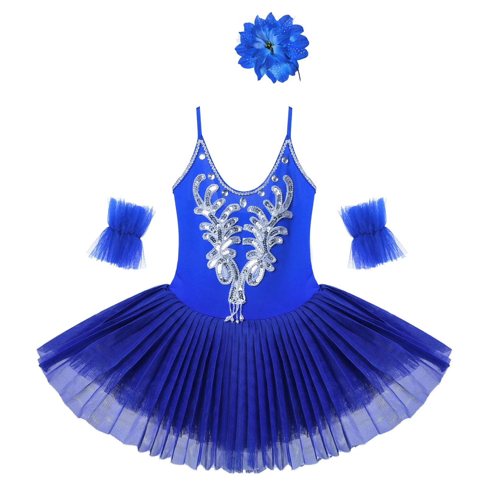 Set Include: 1Pc Ballet Leotard Dress, 1 Pair of Arm Sleeves, 1Pc Hair Clip