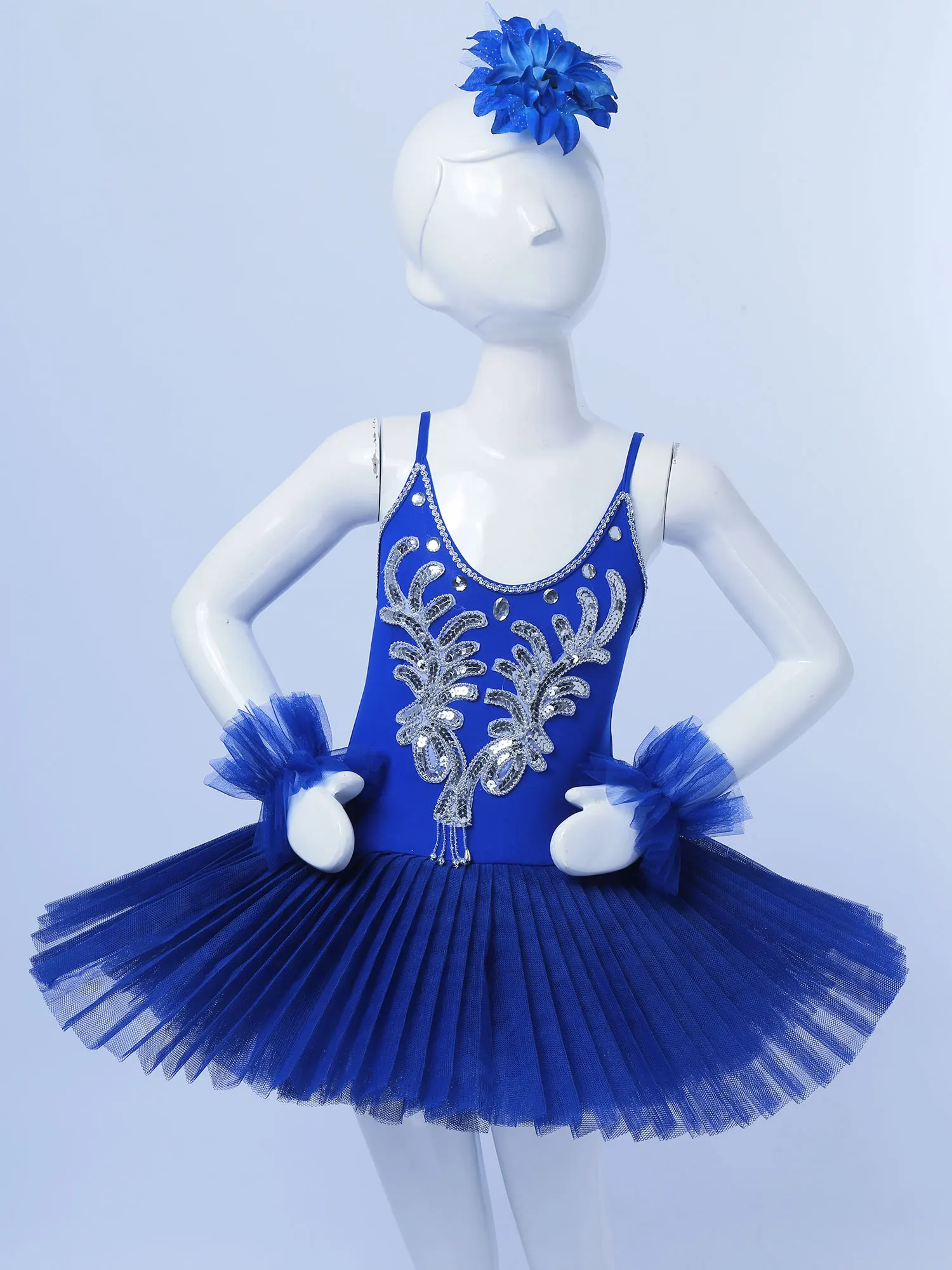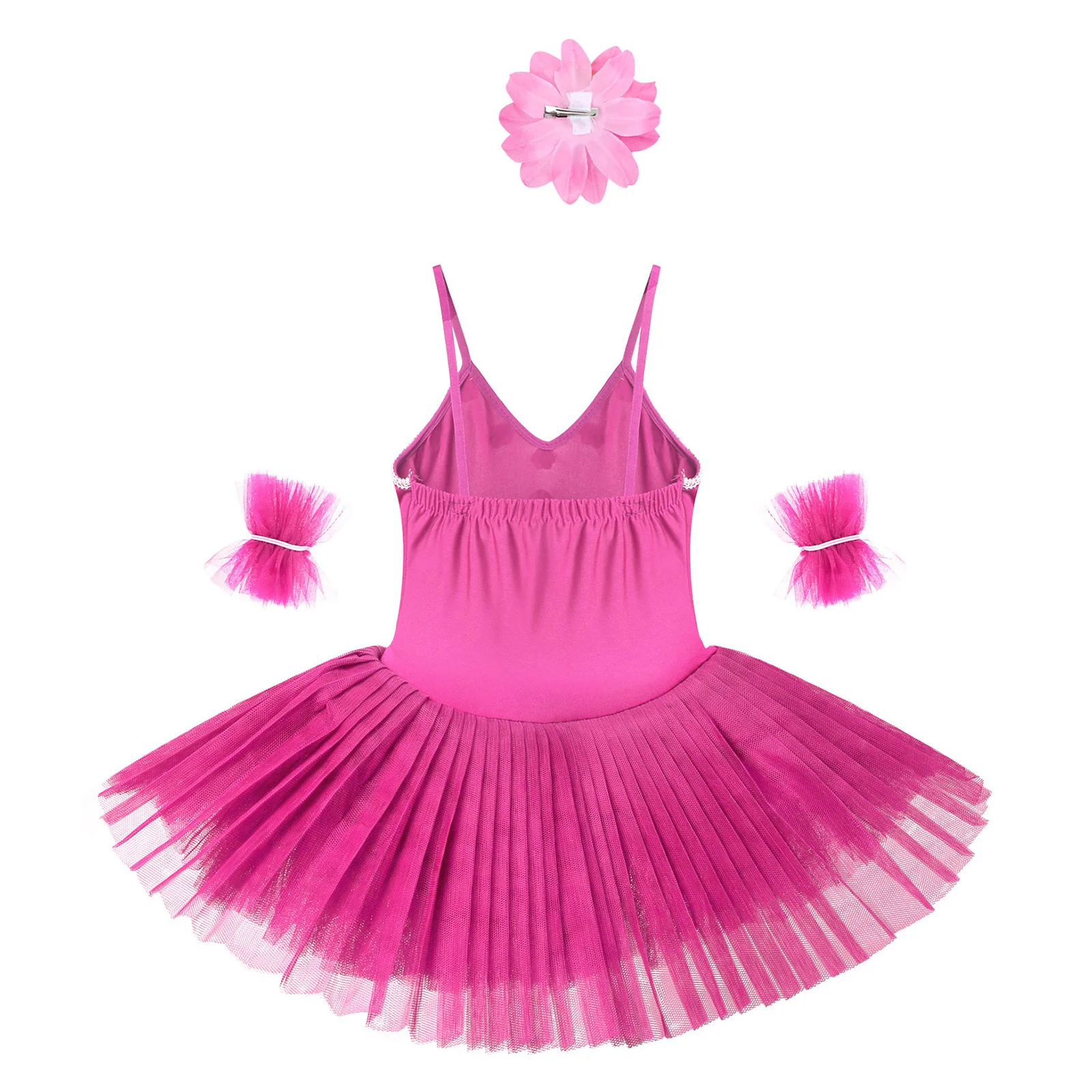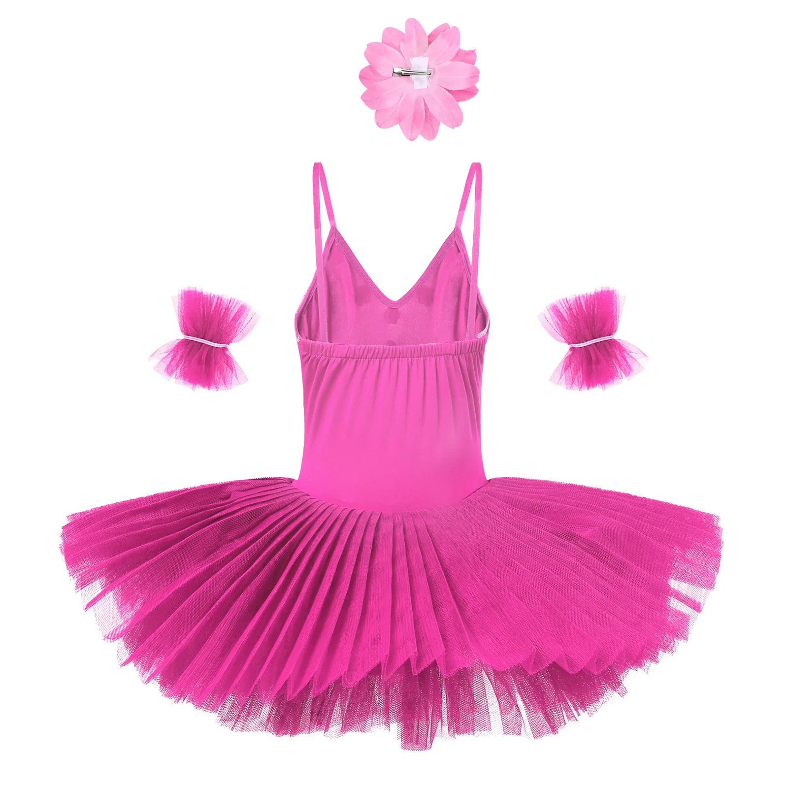 Set Include: 1Pc Ballet Leotard Dress, 1 Pair of Arm Sleeves, 1Pc Hair Clip