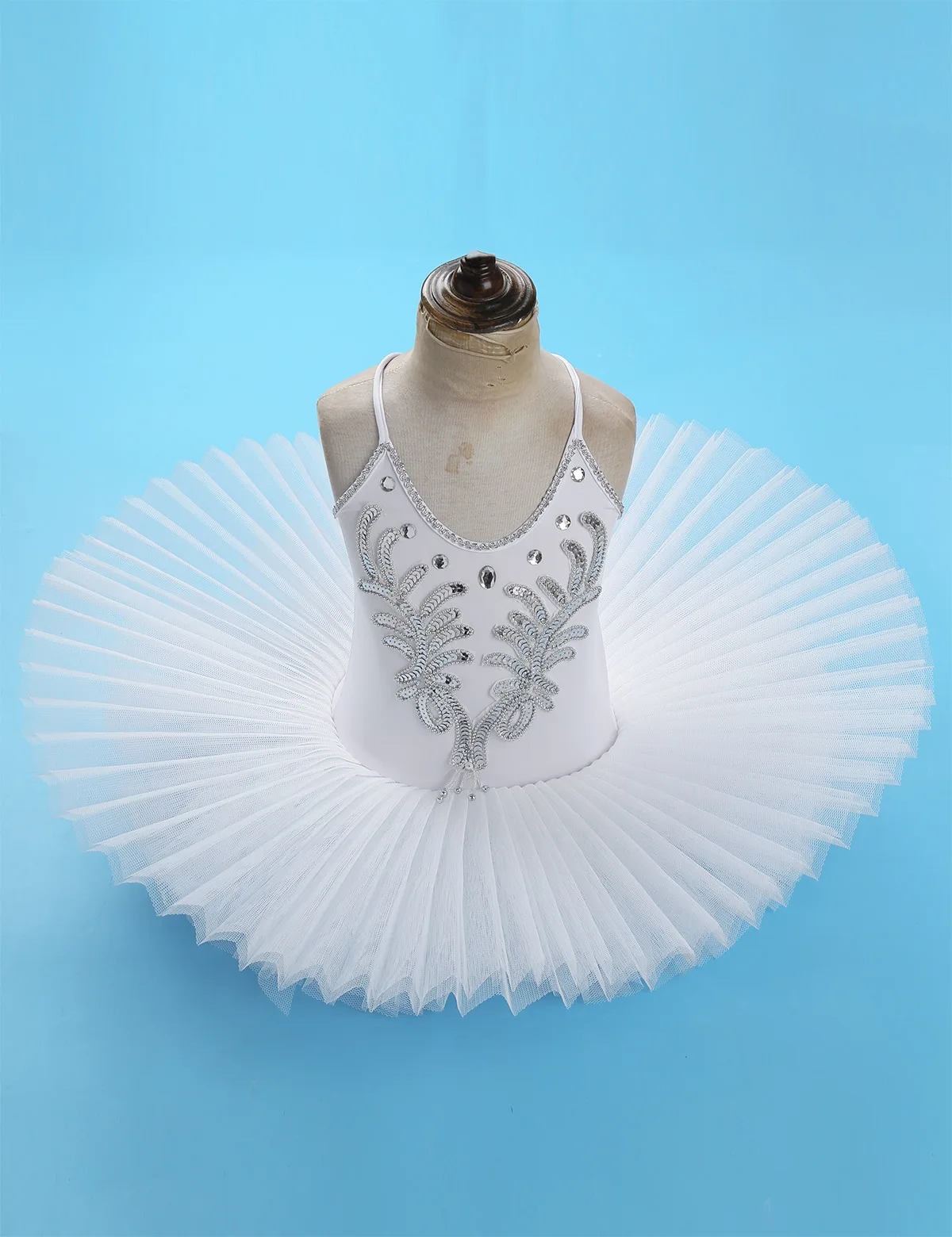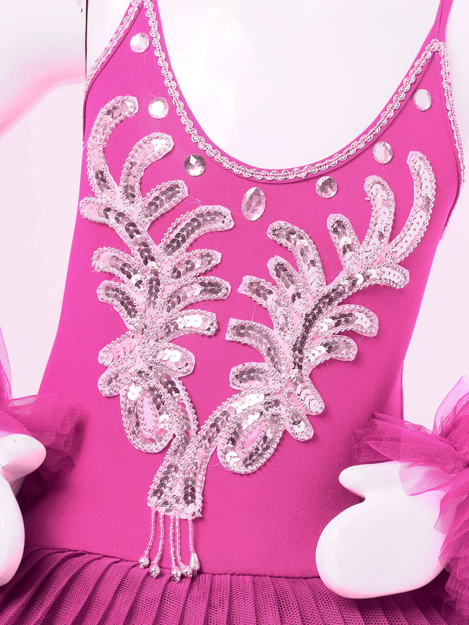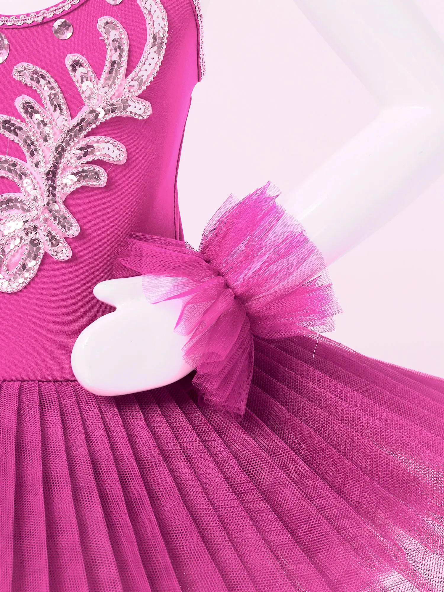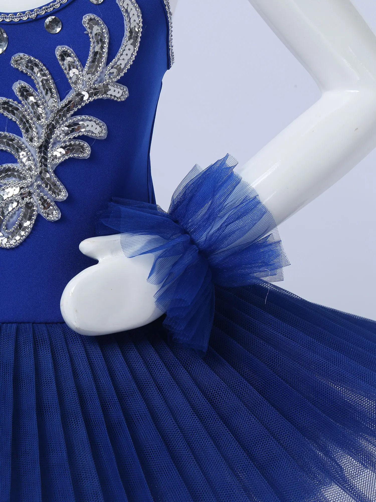 Dance leotard dress is made of polyester and netting material, hand wash.