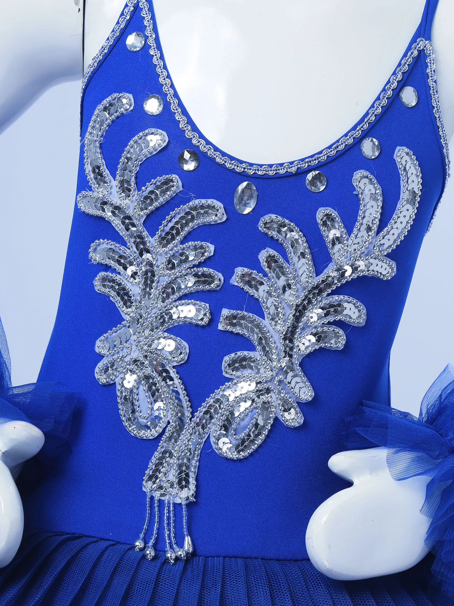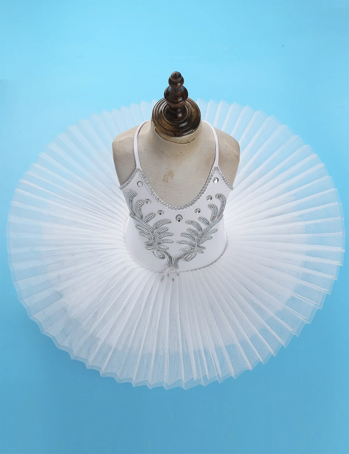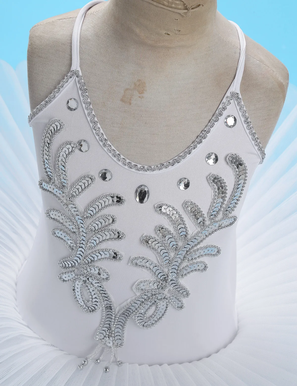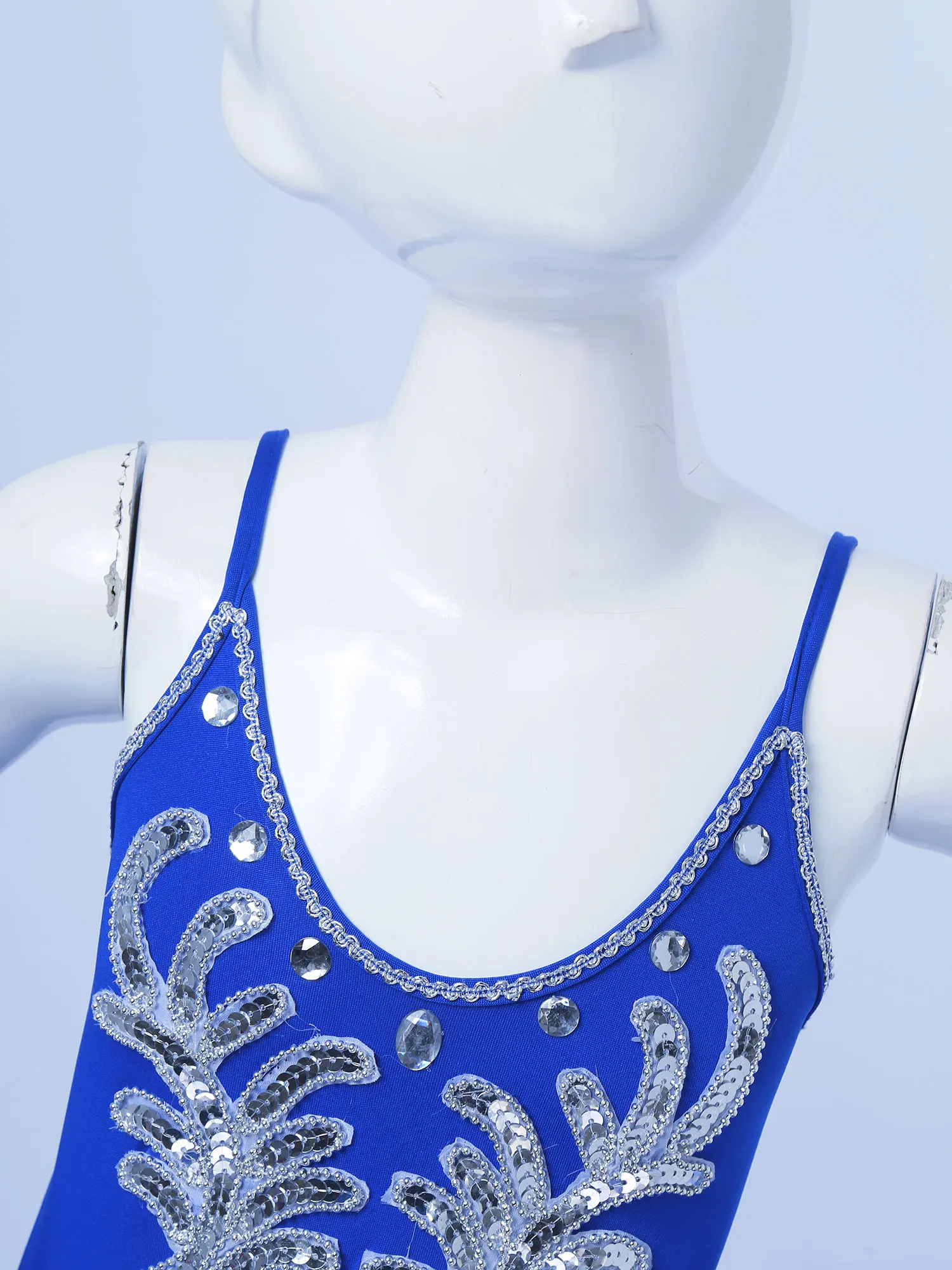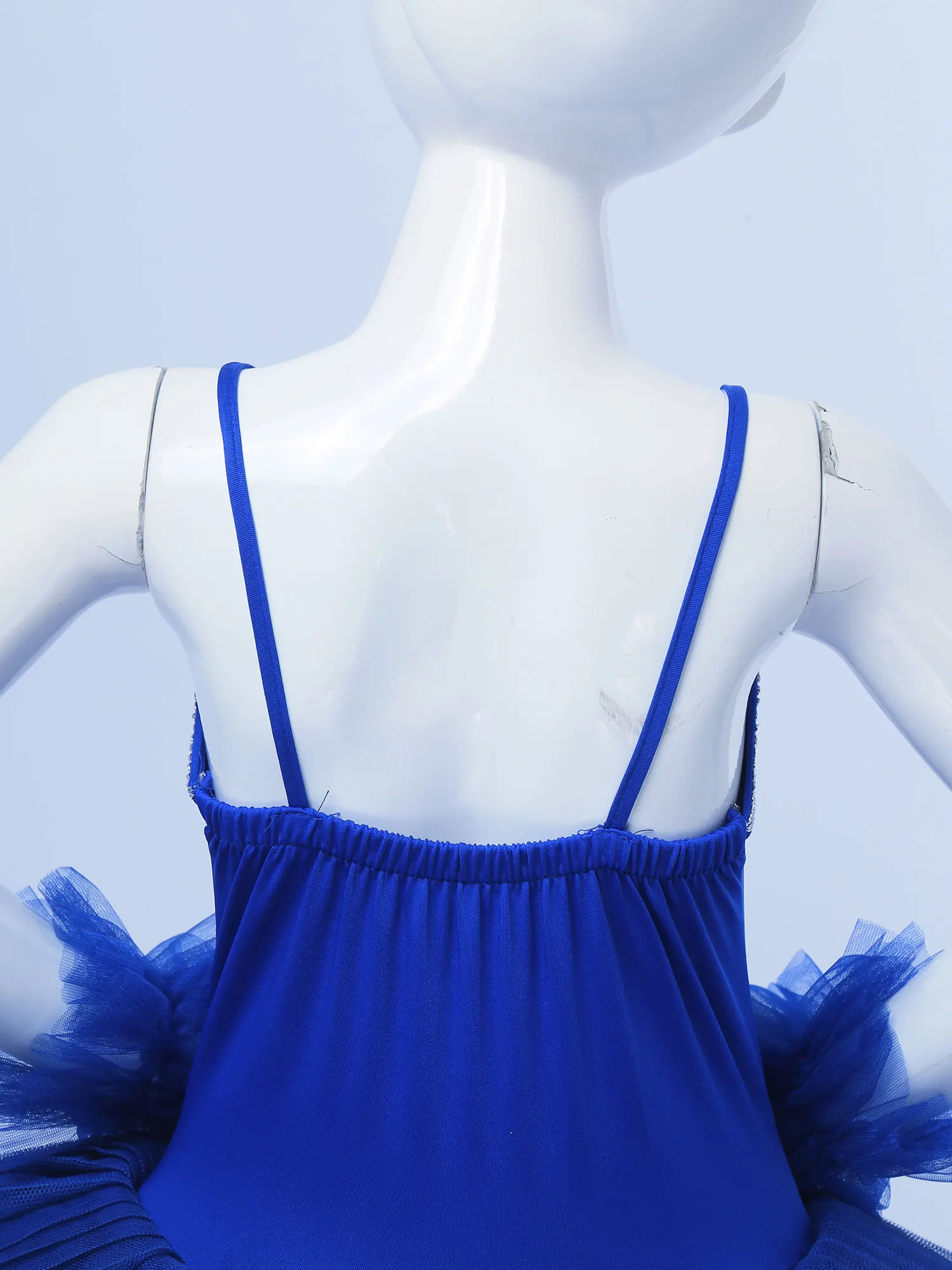 Dance leotard dress is made of polyester and netting material, hand wash.