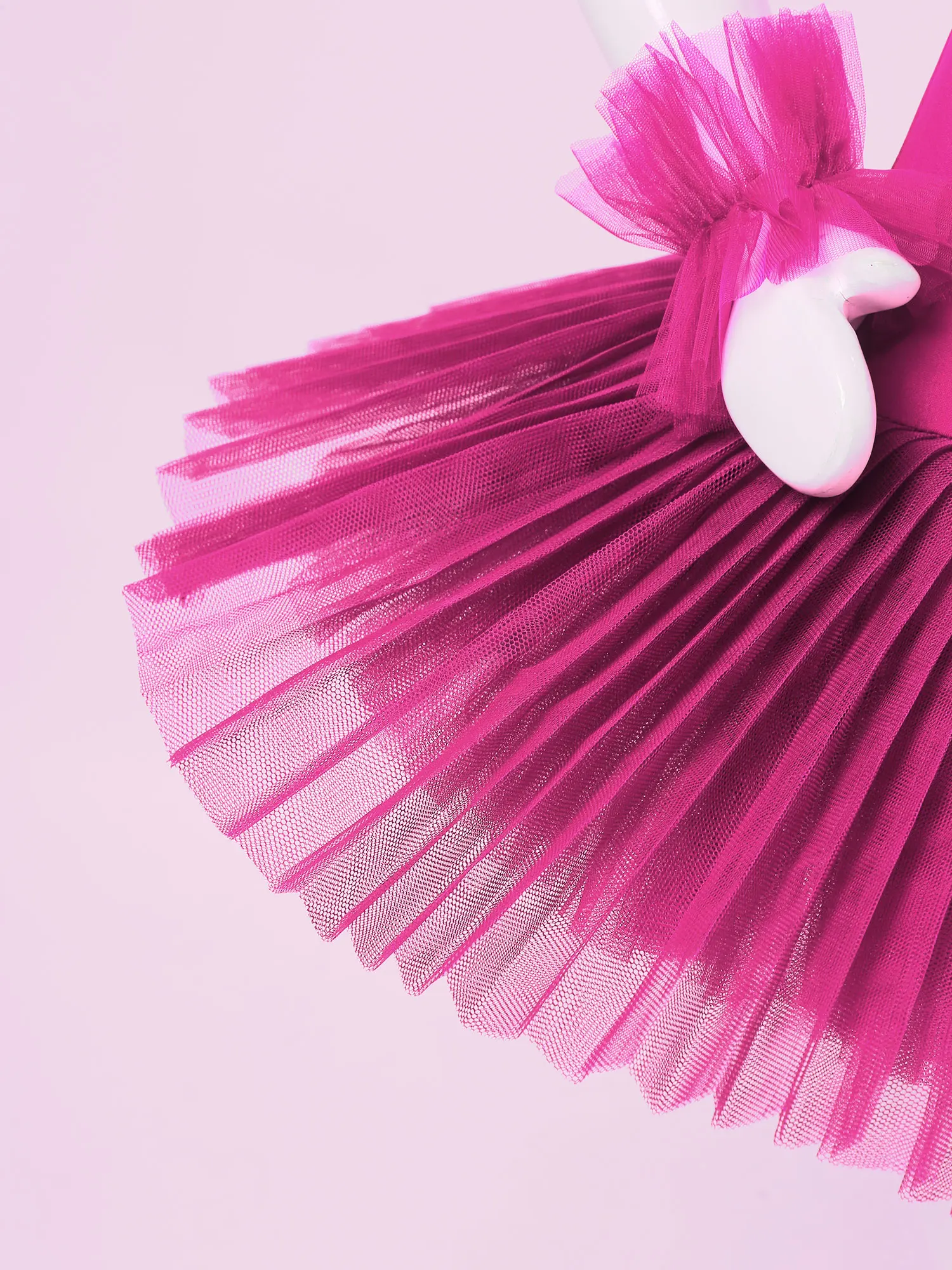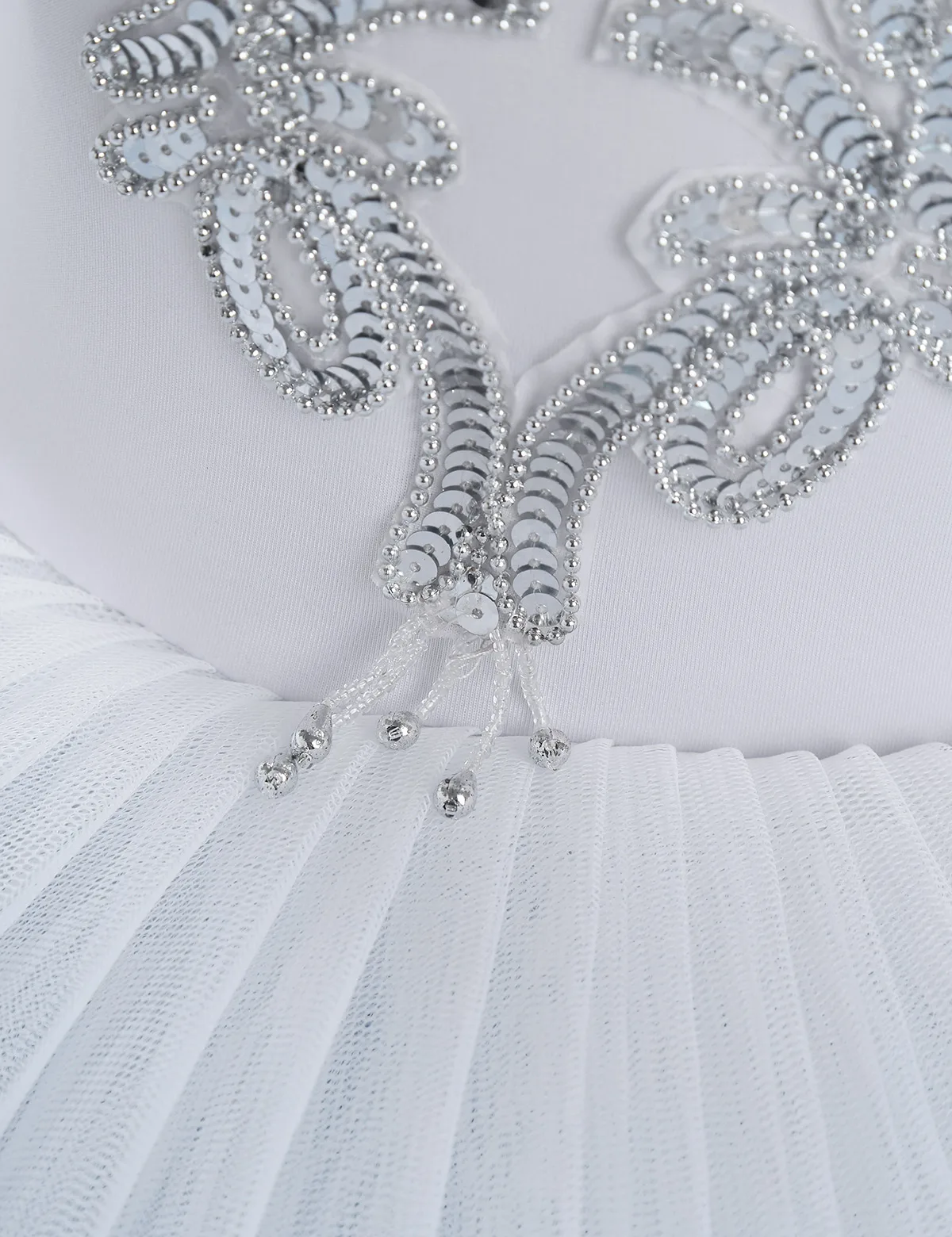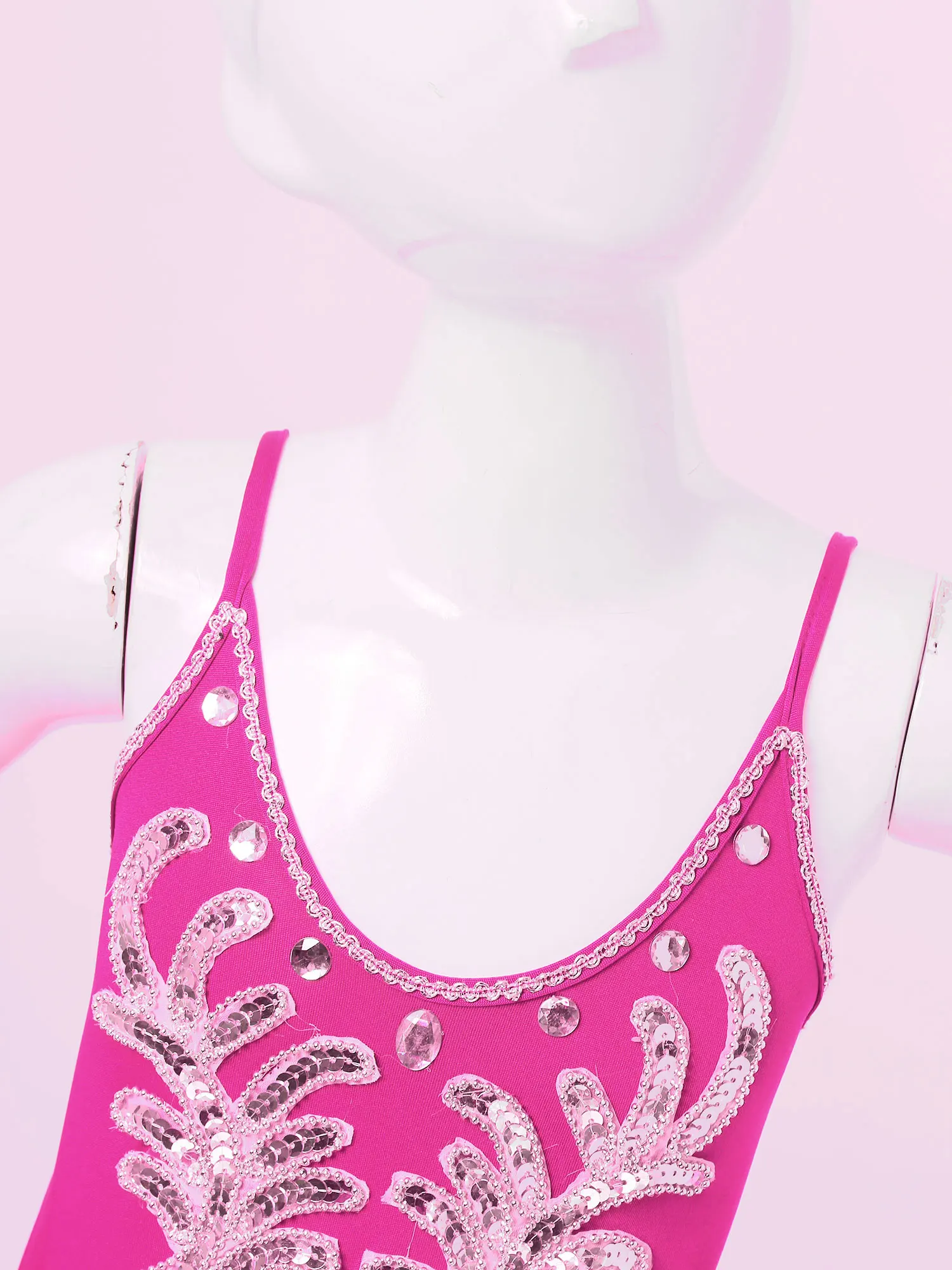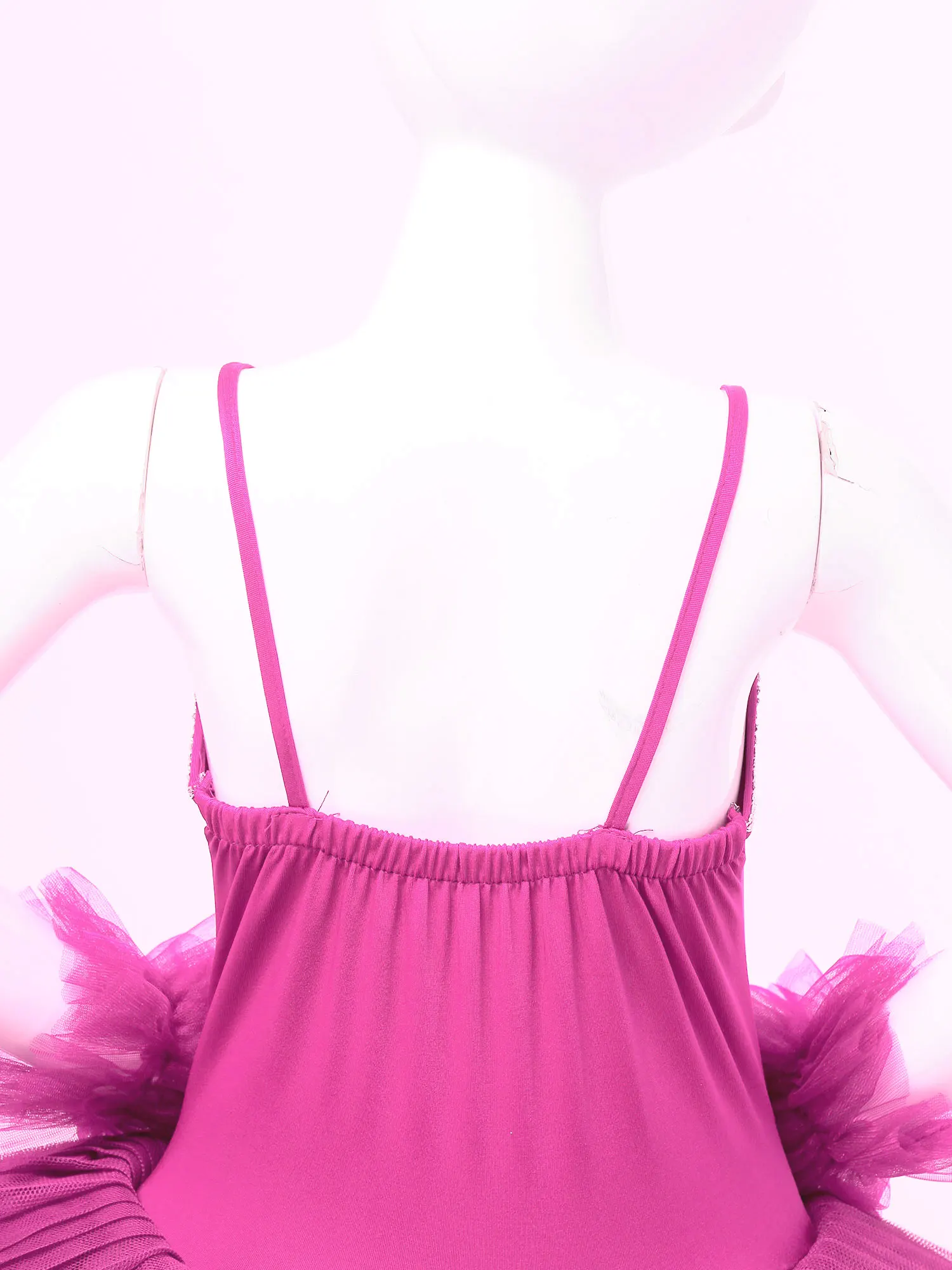 Dance leotard dress is made of polyester and netting material, hand wash.