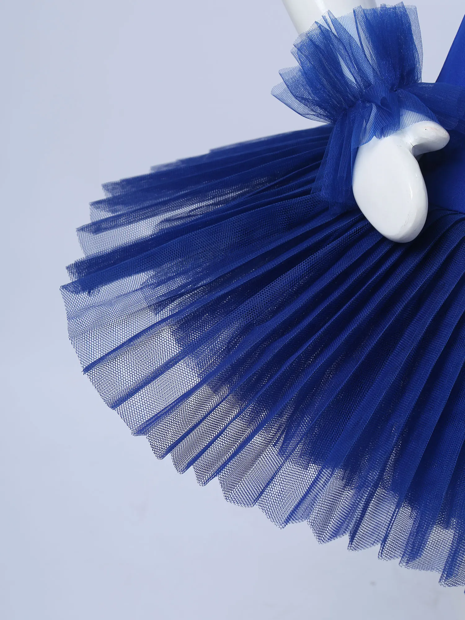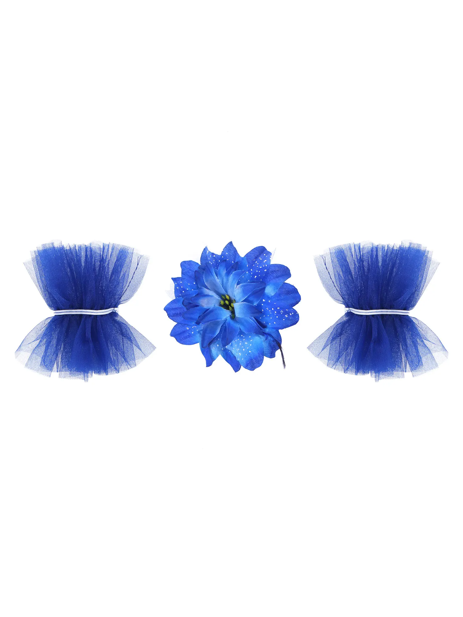 4 layers tutu netting are attached around the waist. Matching with one pair of ruffled arm sleeves and a hair clip. Beautiful and stylish dancewear for your girl.