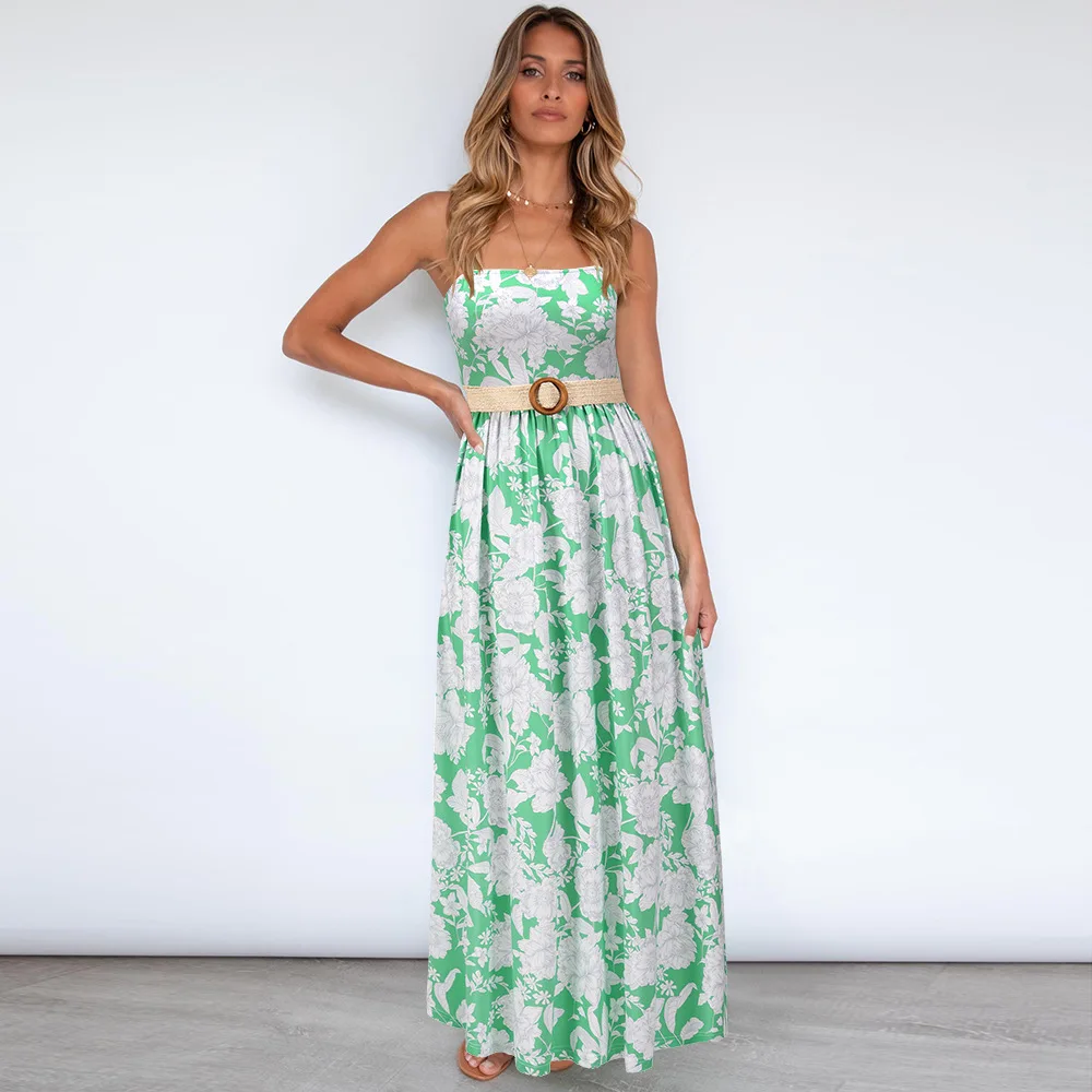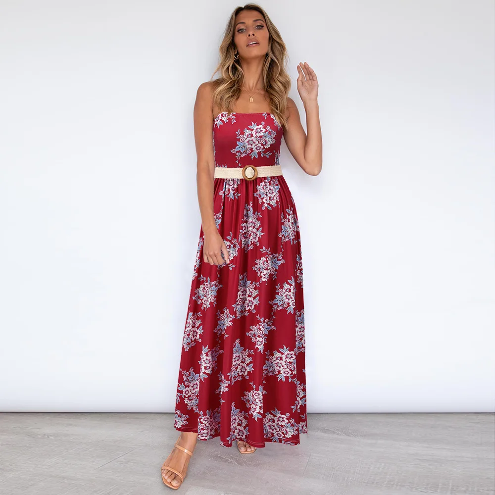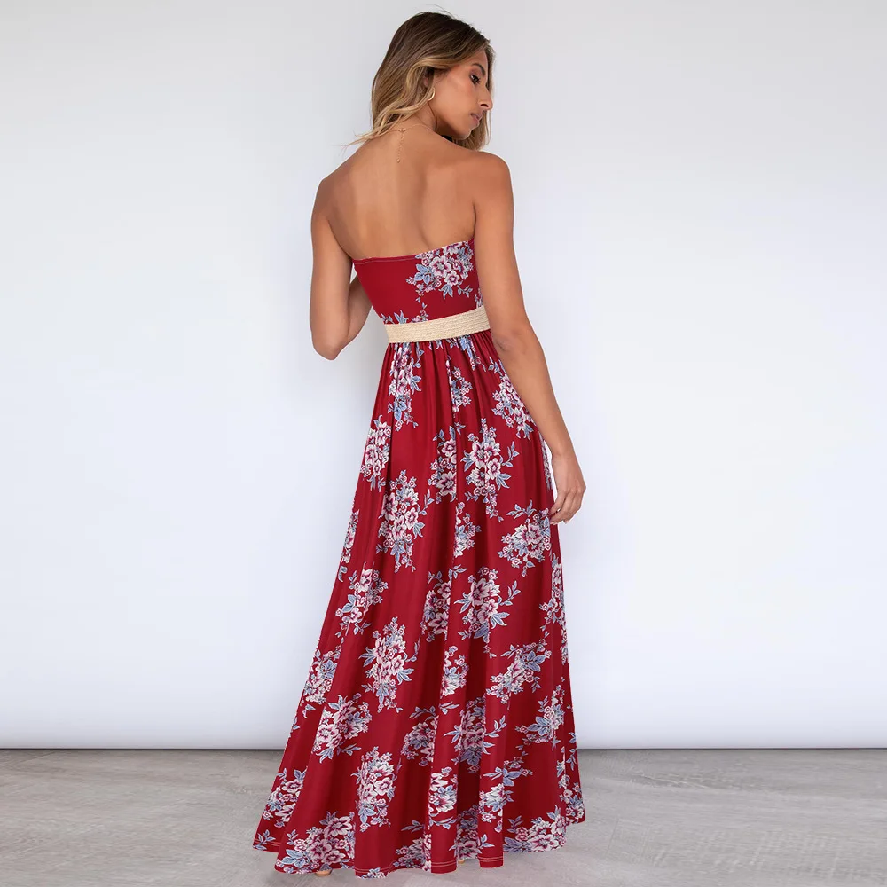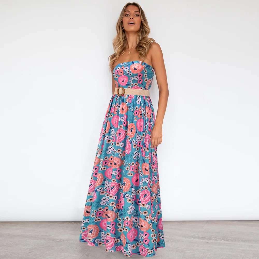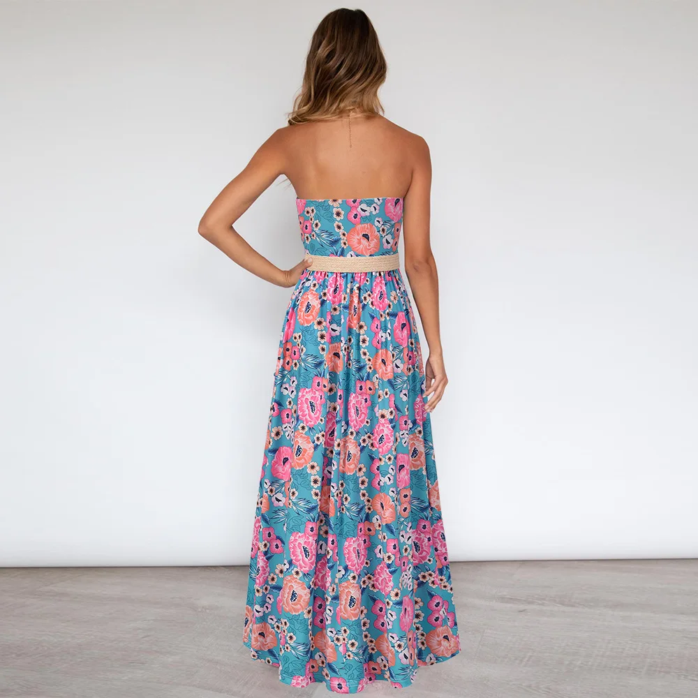 Bikoles Summer Sexy Strapless Spaghetti Straps Women's Dress 2021 New Fashion Bohemia Flowers Print Blit Tunic Maxi Ladies Robe