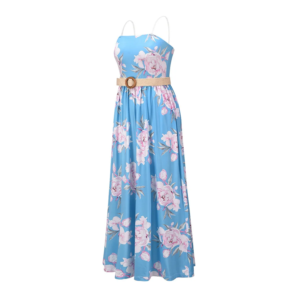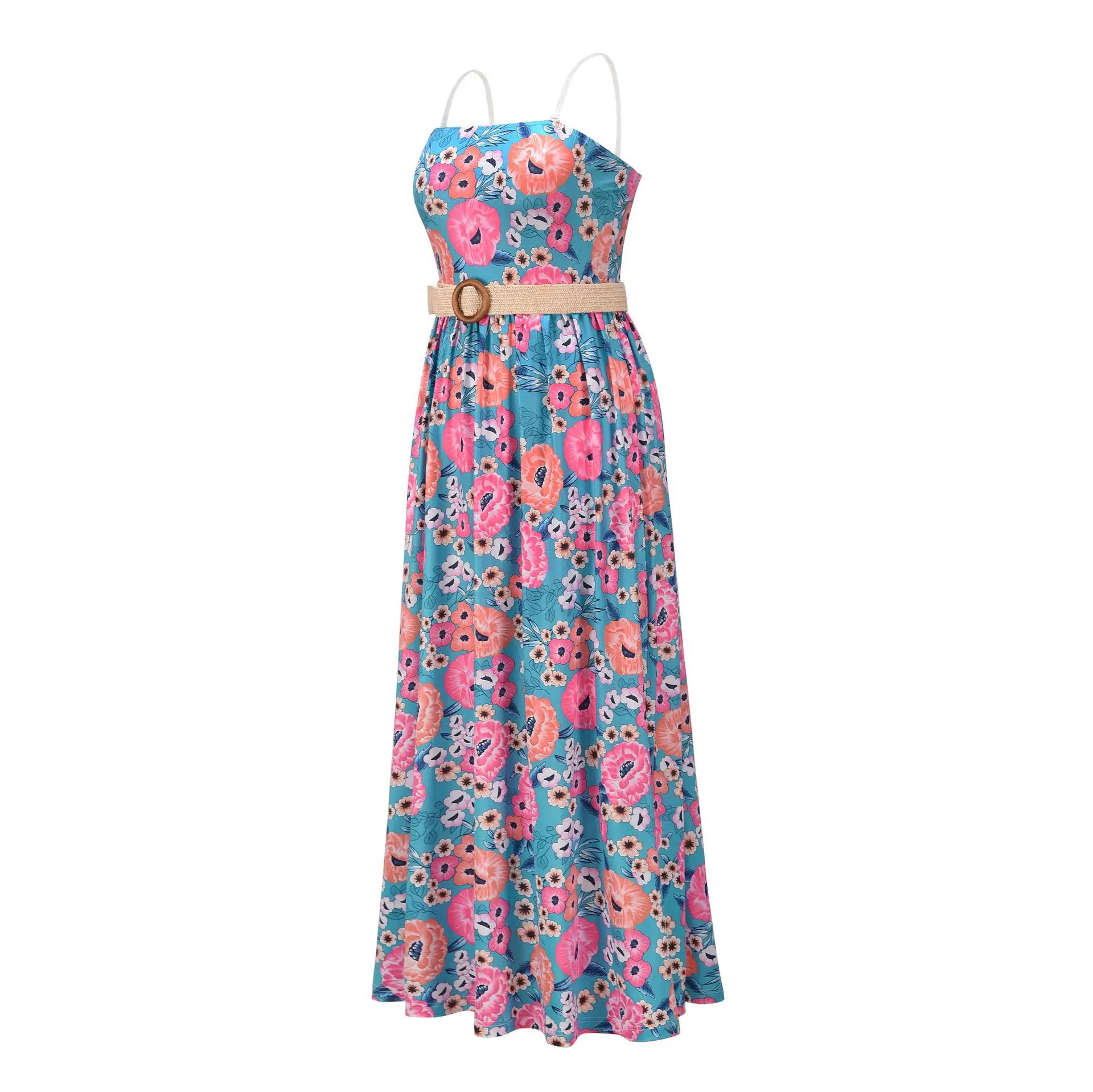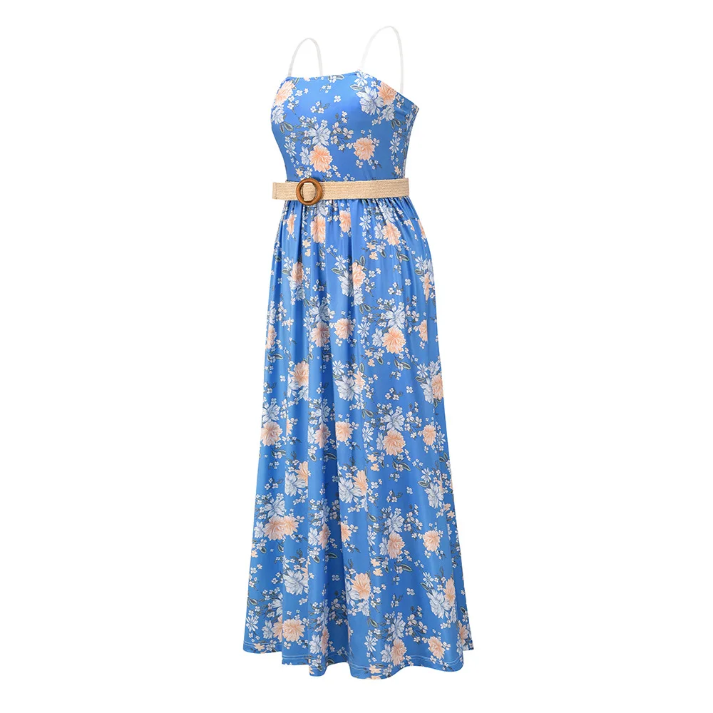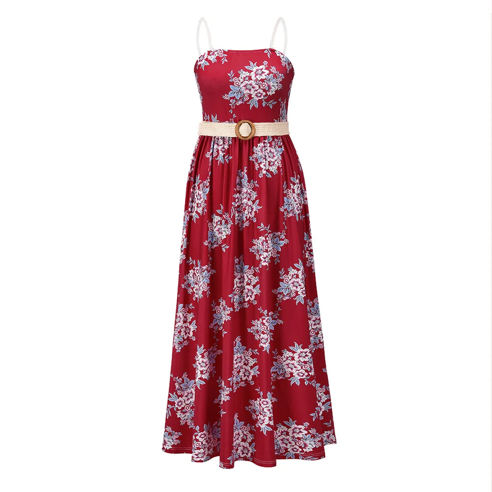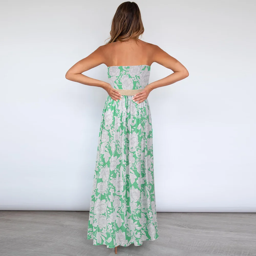 Bikoles Summer Sexy Strapless Spaghetti Straps Women's Dress 2021 New Fashion Bohemia Flowers Print Blit Tunic Maxi Ladies Robe