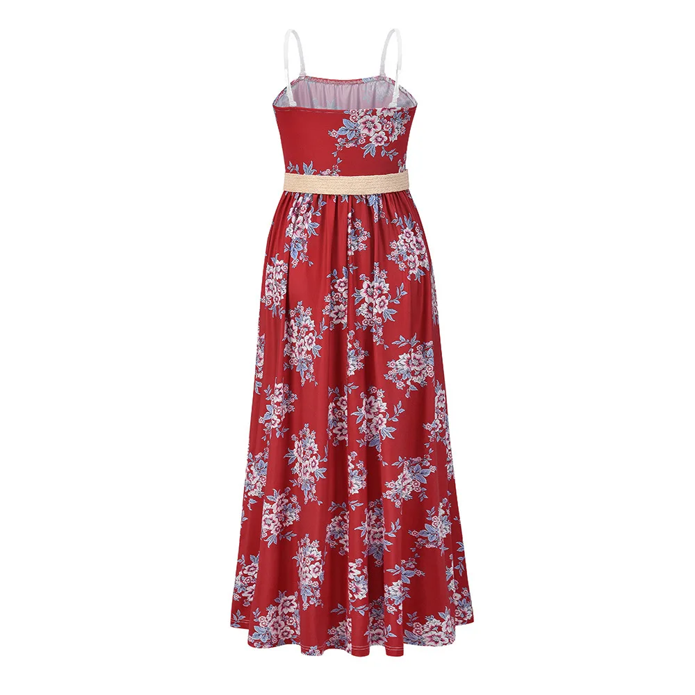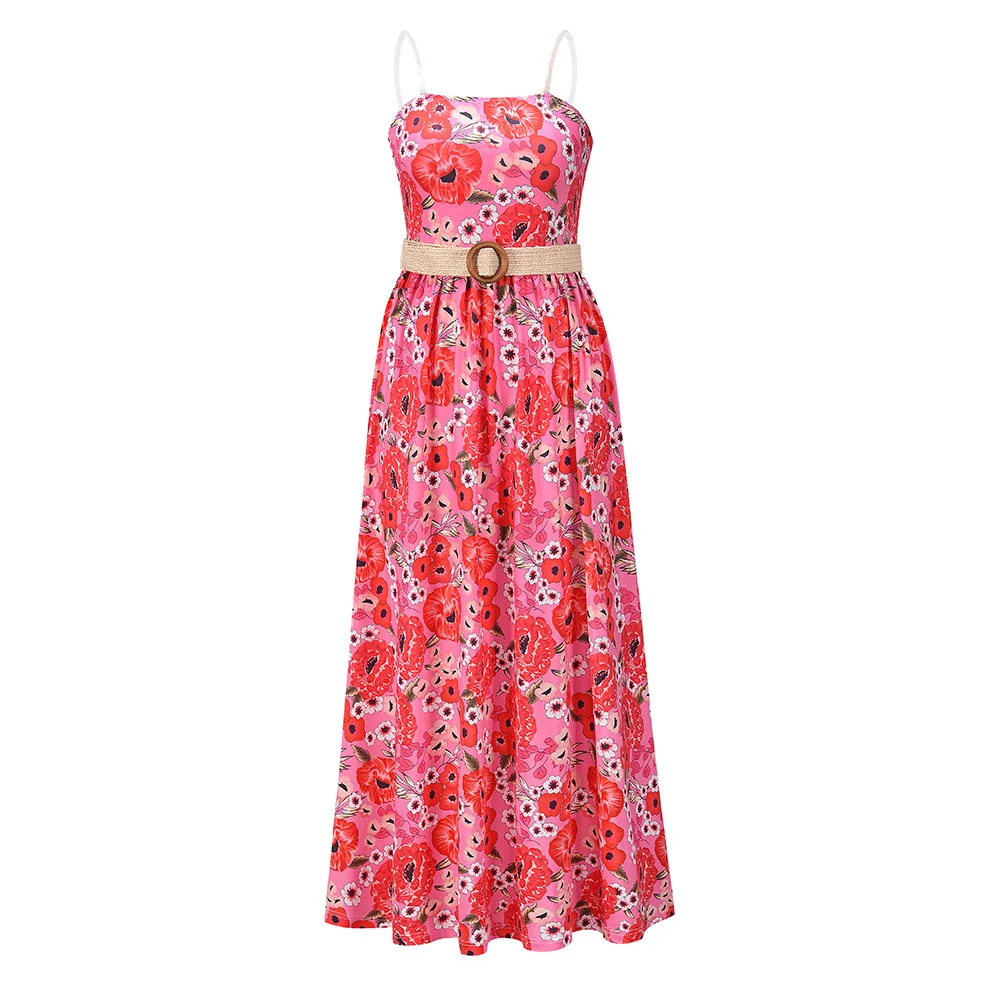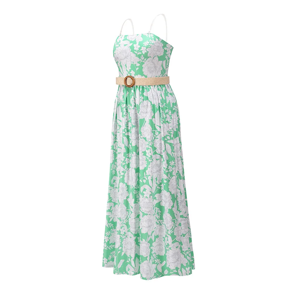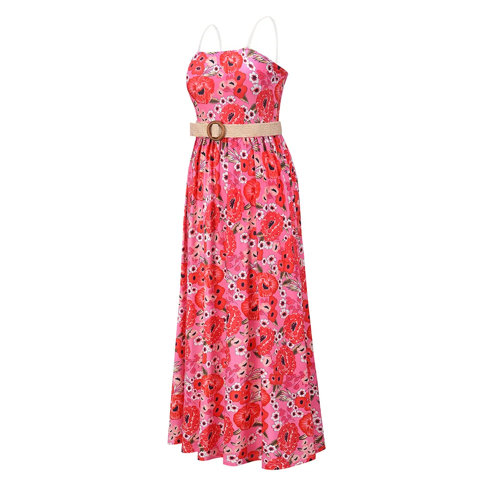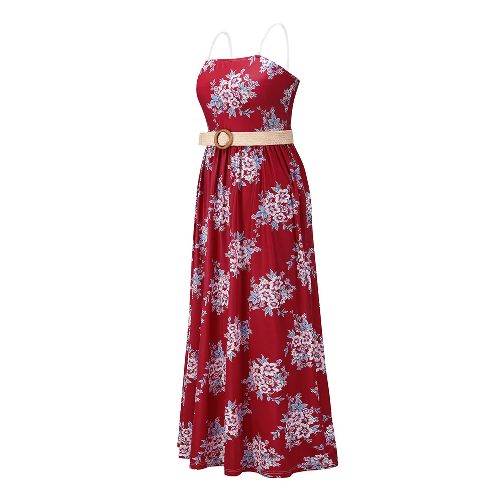 Bikoles Summer Sexy Strapless Spaghetti Straps Women's Dress 2021 New Fashion Bohemia Flowers Print Blit Tunic Maxi Ladies Robe