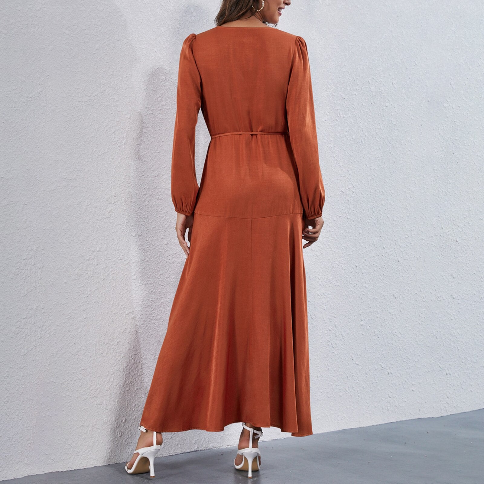 Boho Women Solid Maxi Dress 2021 Autumn Fashion V Neck Party Dress Long Sleeve High Waist Irregular Hem Casual Dress With Sashes