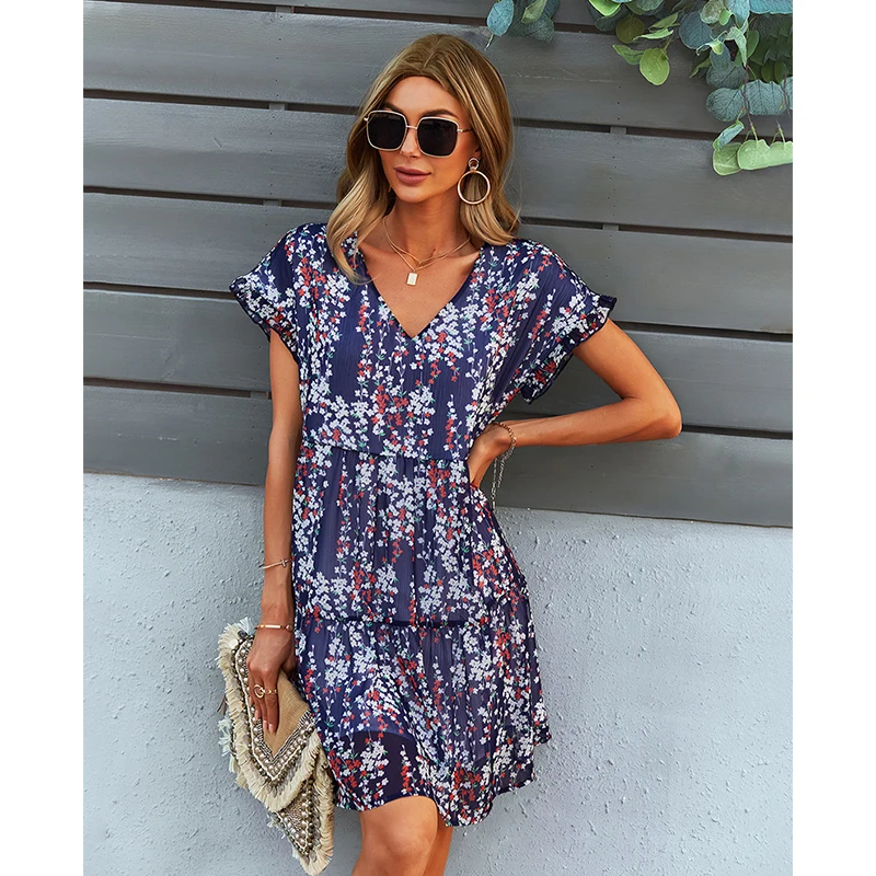 Chiffon Midi Vestidos Fashion Floral Printed Dress Casual Short Sleeve Summer New Elegant A-line Skirt Loose Comfortable Dress.