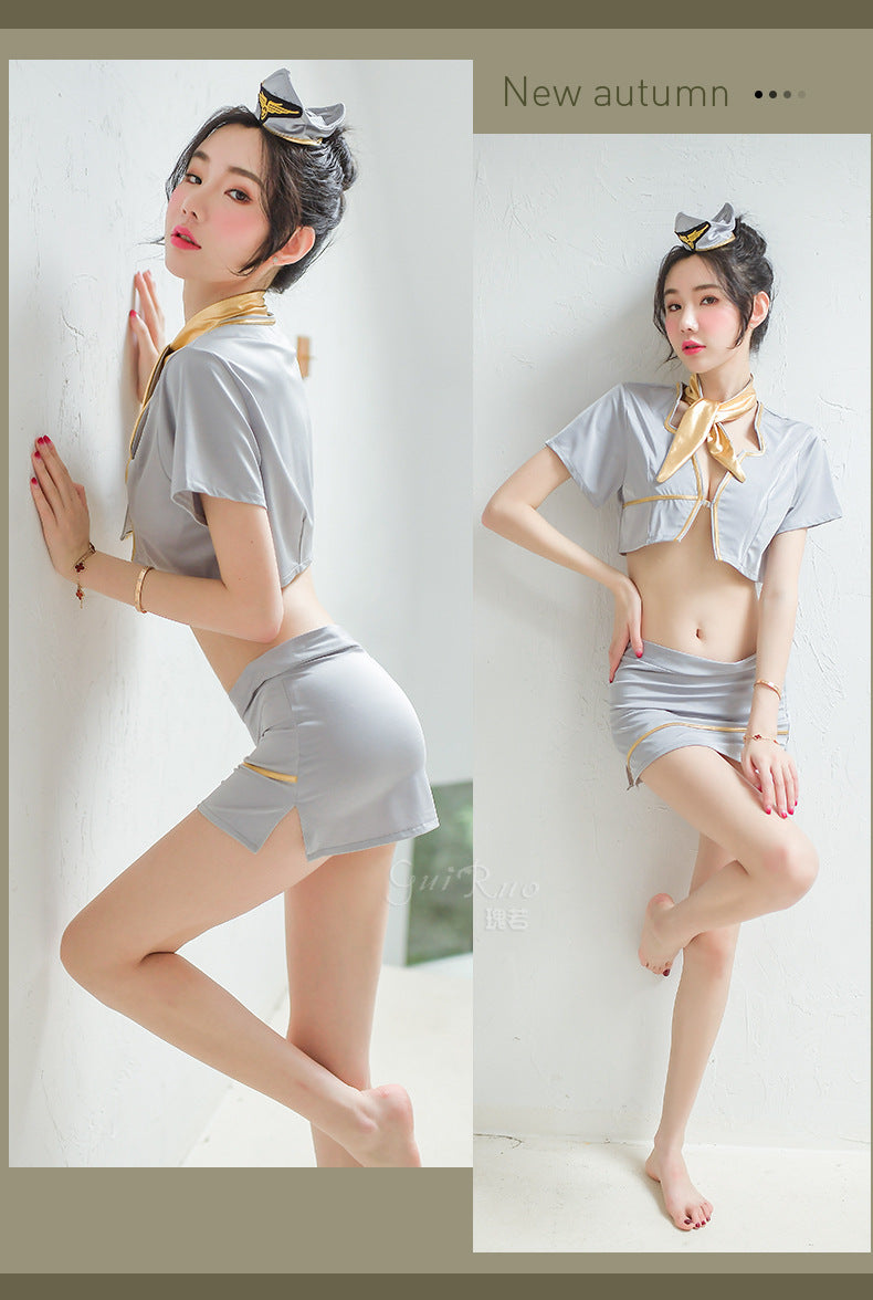 Cosplay Stewardess Uniform Woman Sexy Porno Skirt Femme V-top Dress Set Exotica Naughty Roleplay Flight Attendant Slutty Clothes