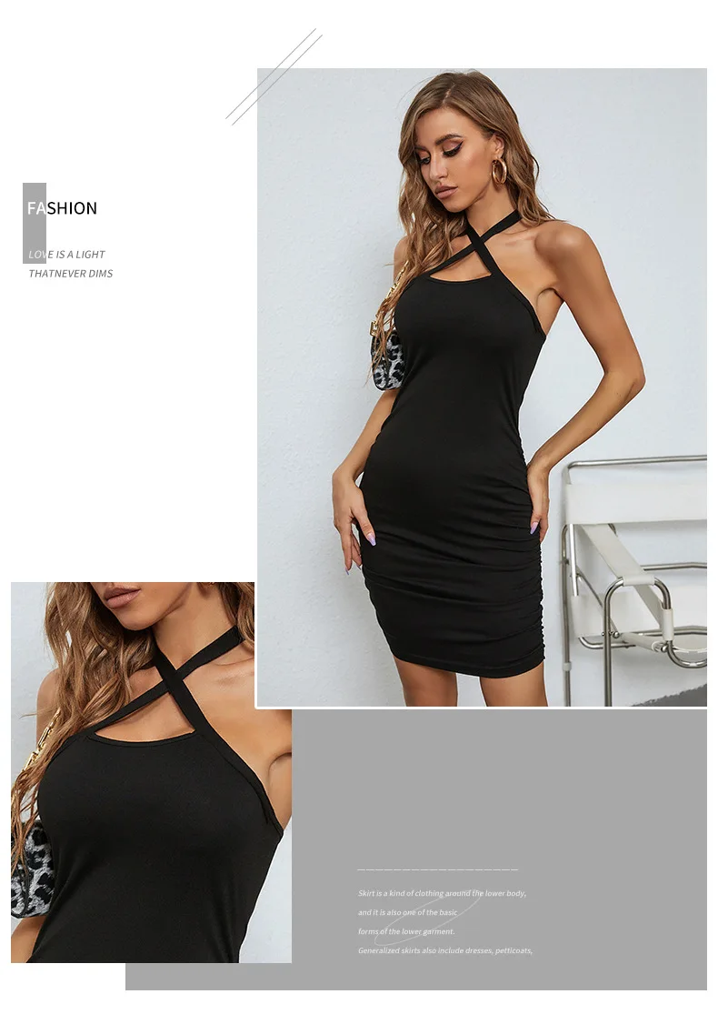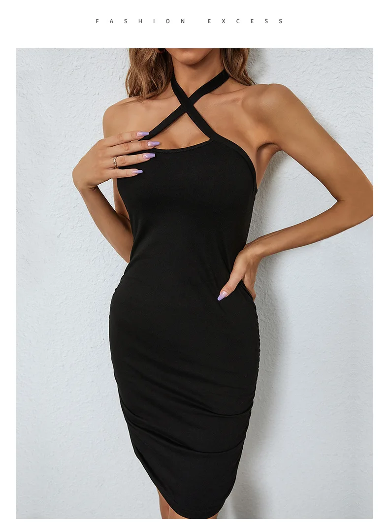 Dress for Women Summer Bodycon Halter Cross Sling Dress Sexy Vest Black Women Dress Fashion 2022 New Casual Dress