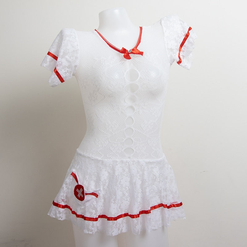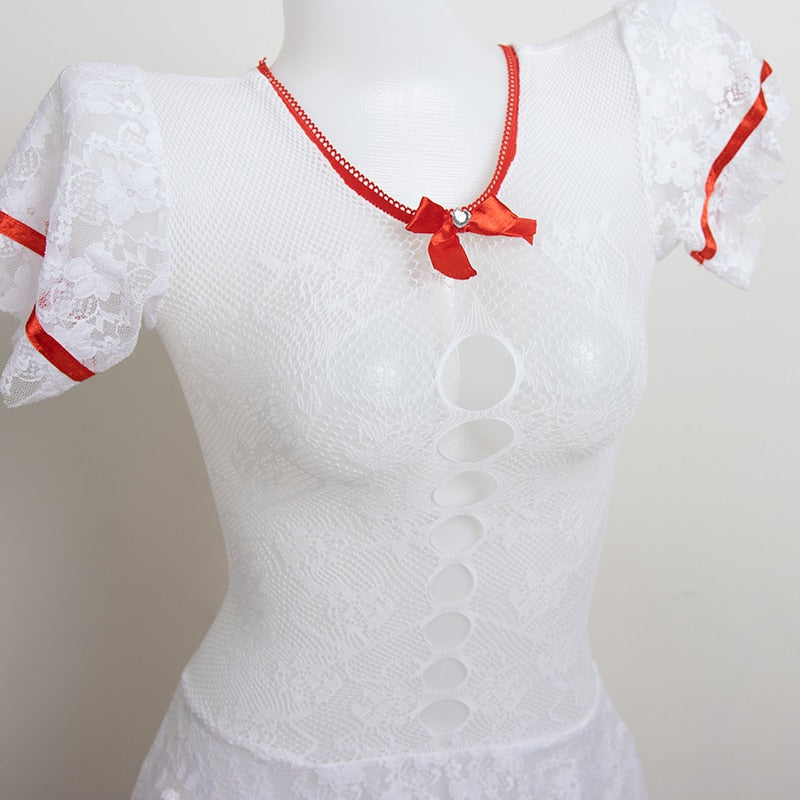 Set includes:Skirt+Stocking+Gloves+Headwear+G-string
