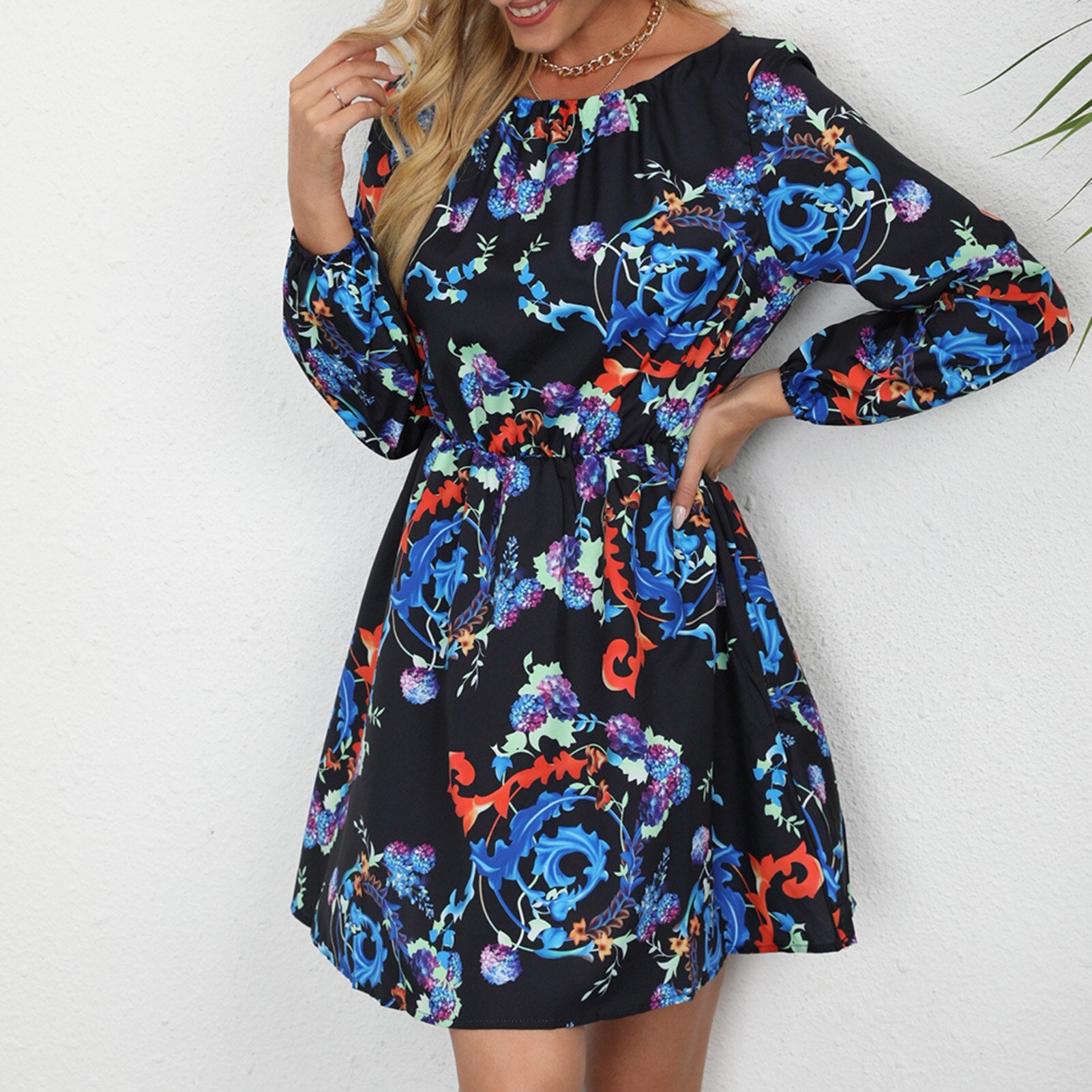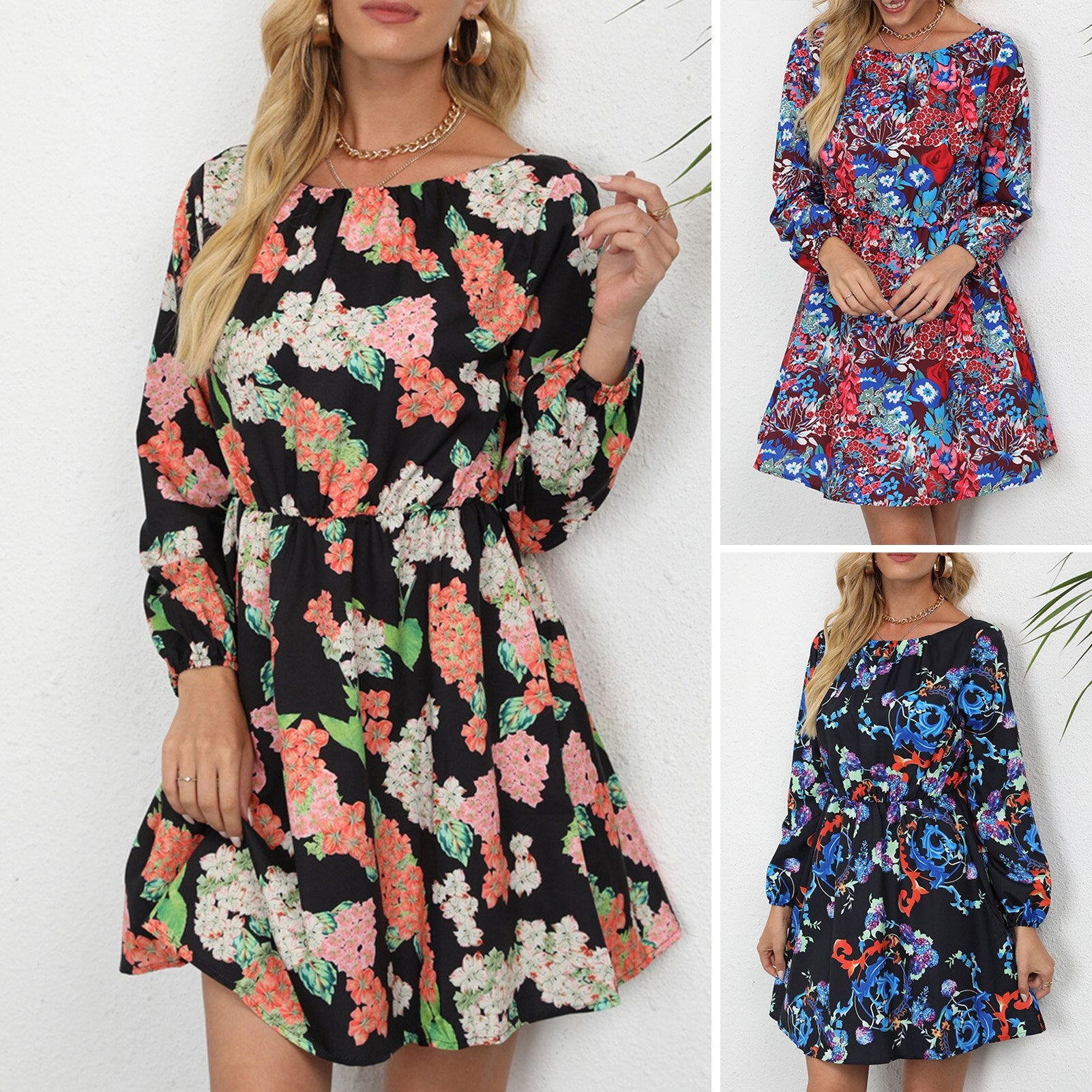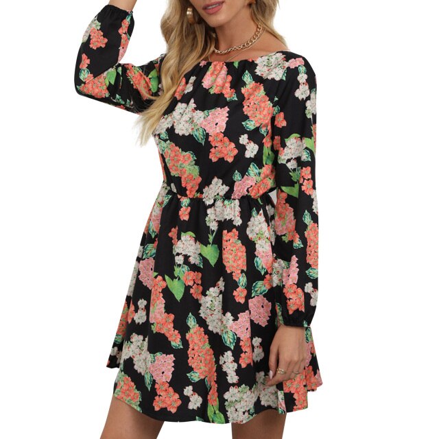 Dress with flowers all over is quite chic and elegant. Featuring O neck and long sleeves, it is of casual style. Have one for the holidays!
