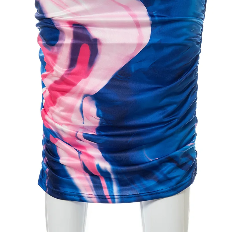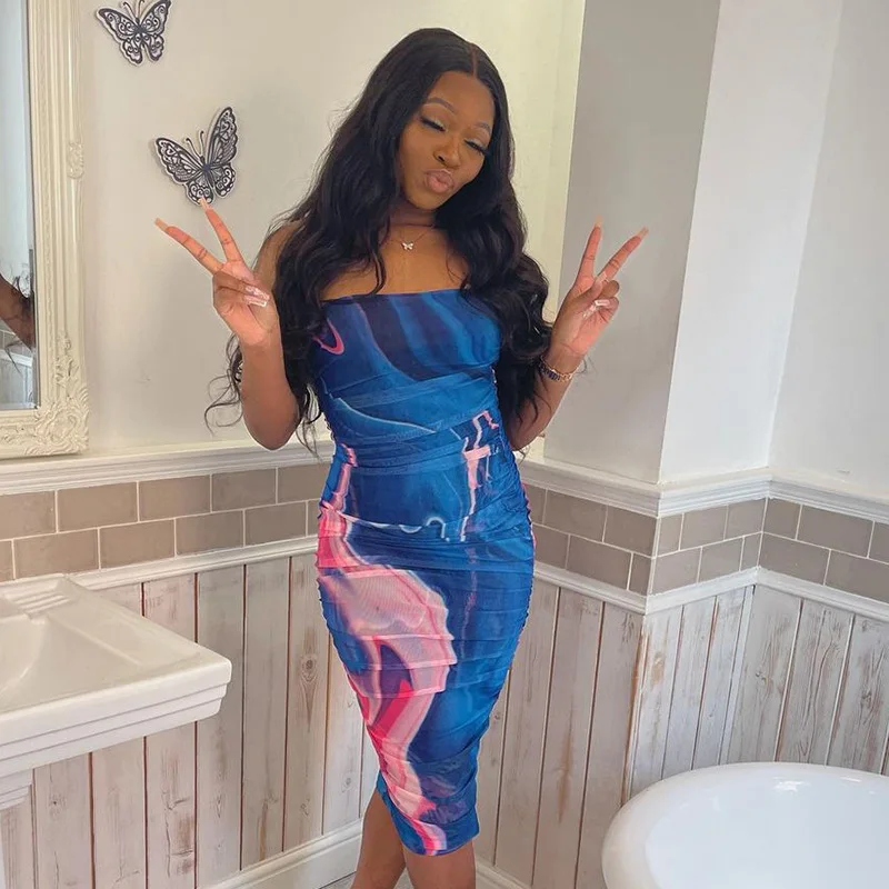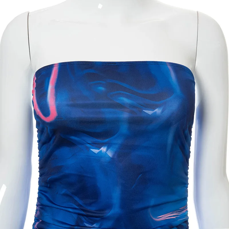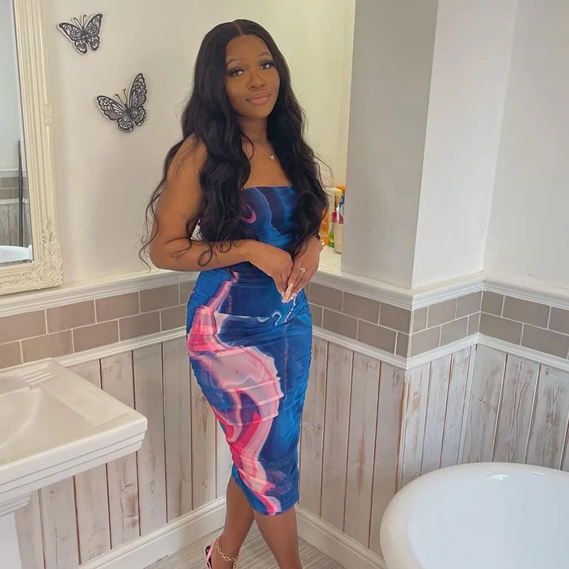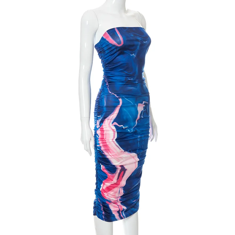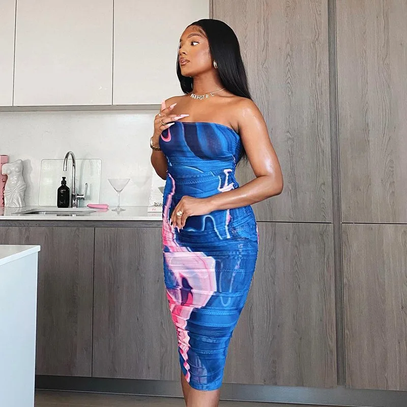 Elegant Strapless Knee Length Dress Women Summer Fashion 2021 Party Floral Print Backless Midi Dress