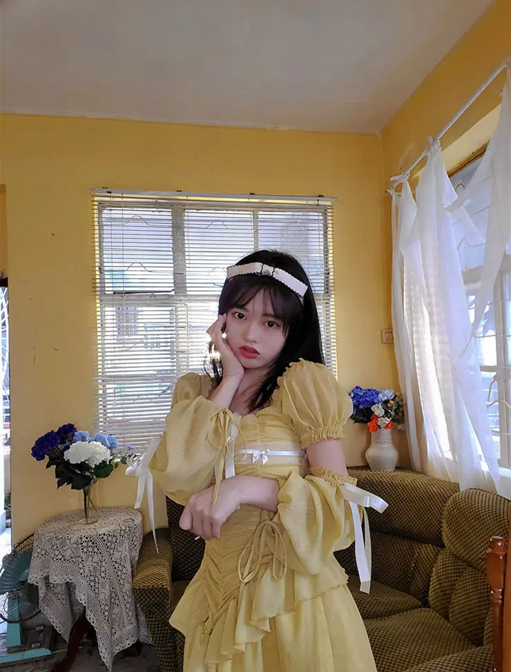 Fleeing Princess Dress Spring French Super Fairy  Sleeve Waist Ruffled Chiffon Dress Short Skirt Female