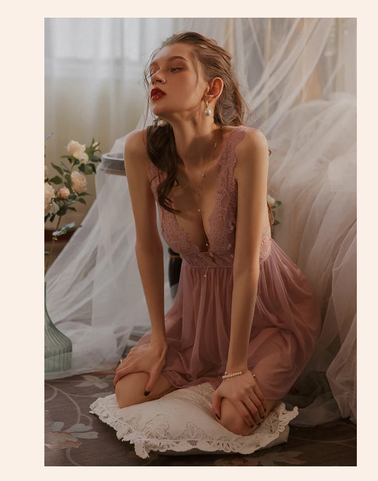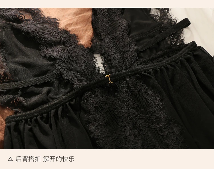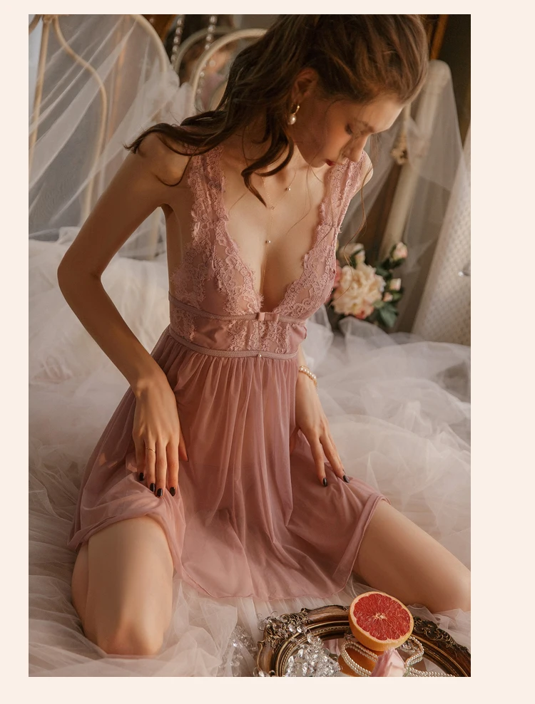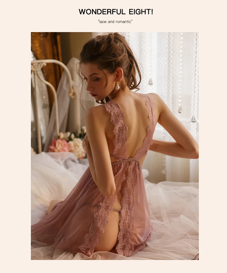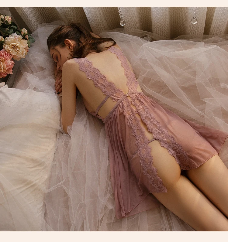 French Pajam Set for Women Beauty Back Split Nightdress Sexy Lingerie Gray Purple Pajamas Lace Underwear Set Dropshipping