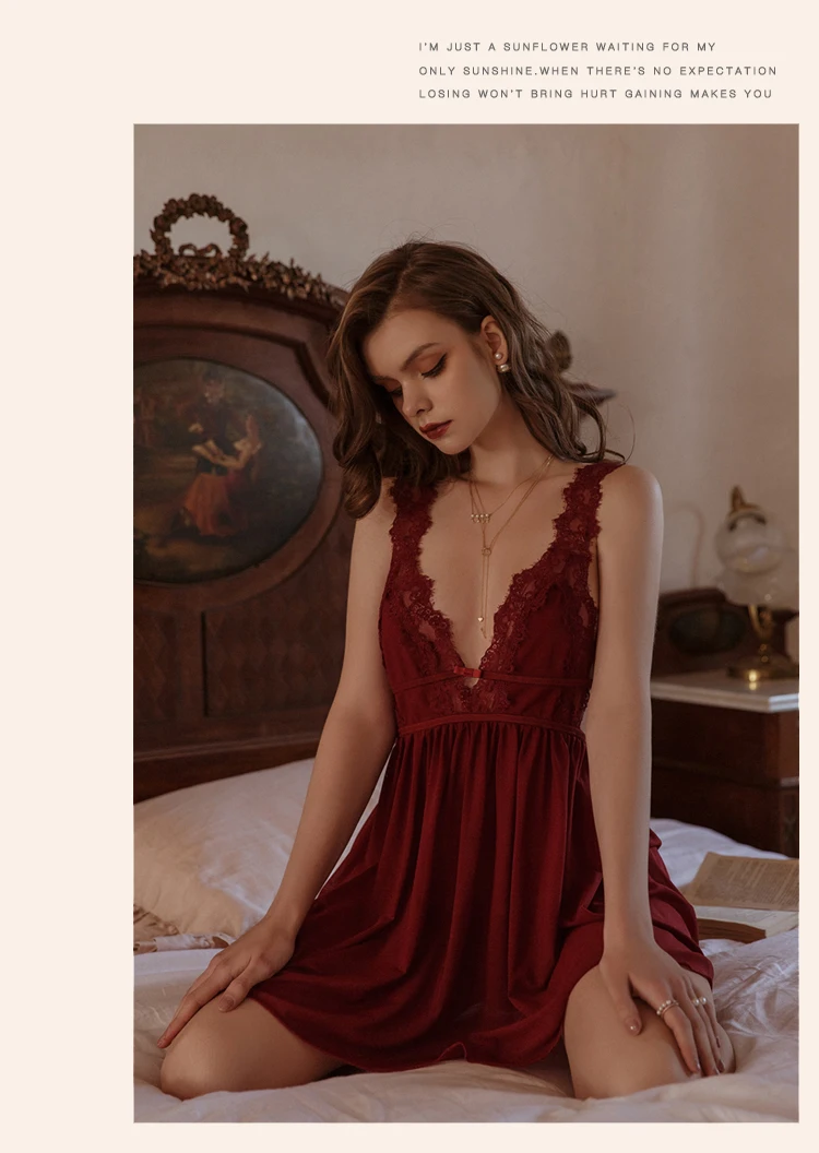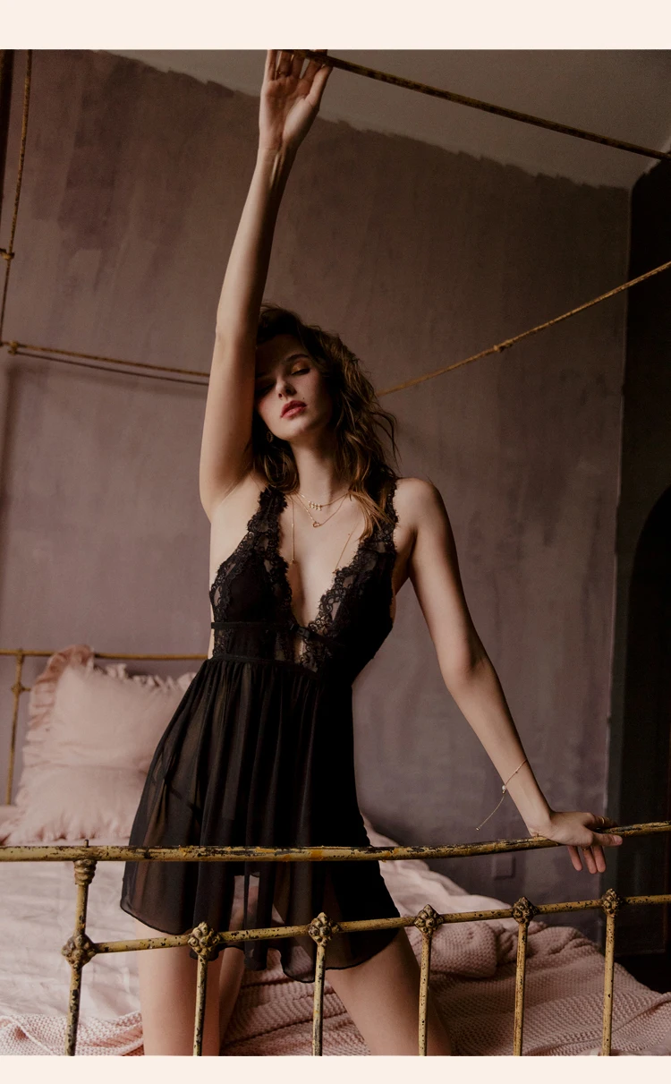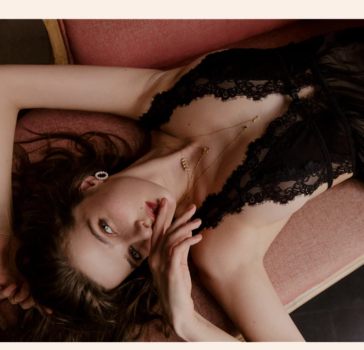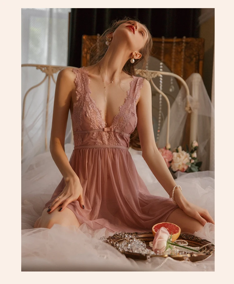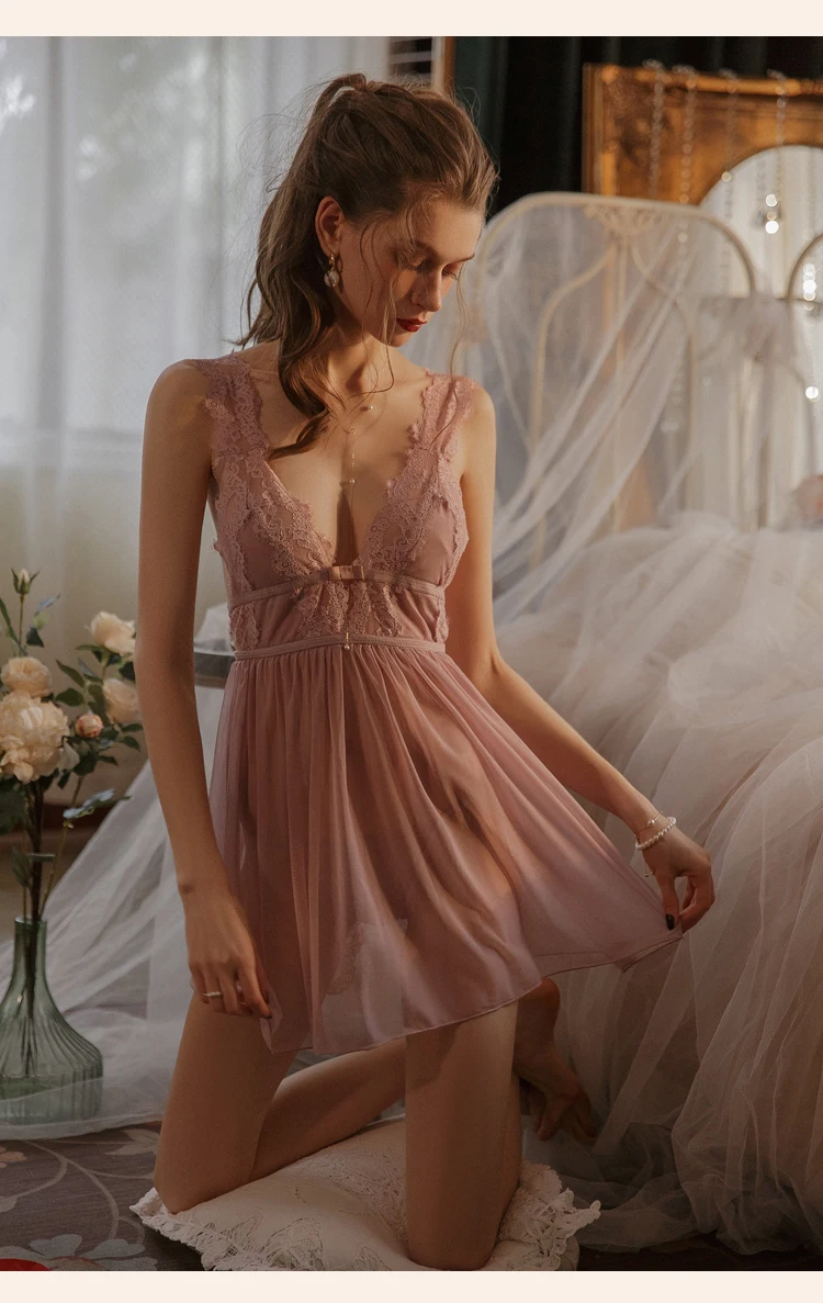 French Pajam Set for Women Beauty Back Split Nightdress Sexy Lingerie Gray Purple Pajamas Lace Underwear Set Dropshipping