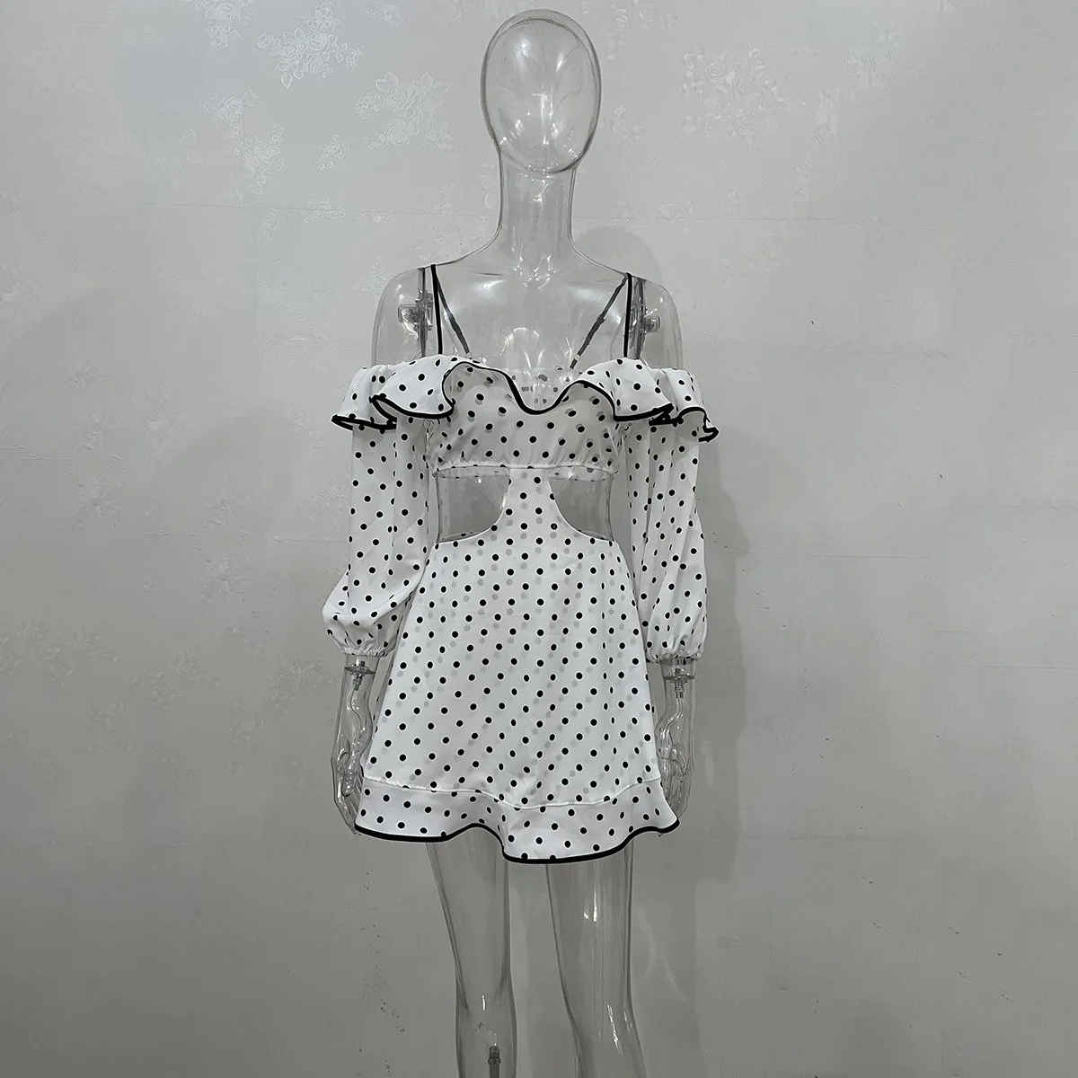 HOT Summer For 2022 Women'S Clothes Retro Polka Dots Backless Casual Evening Party Sexy Prom Long Sleeves Mini Dress Vestidos