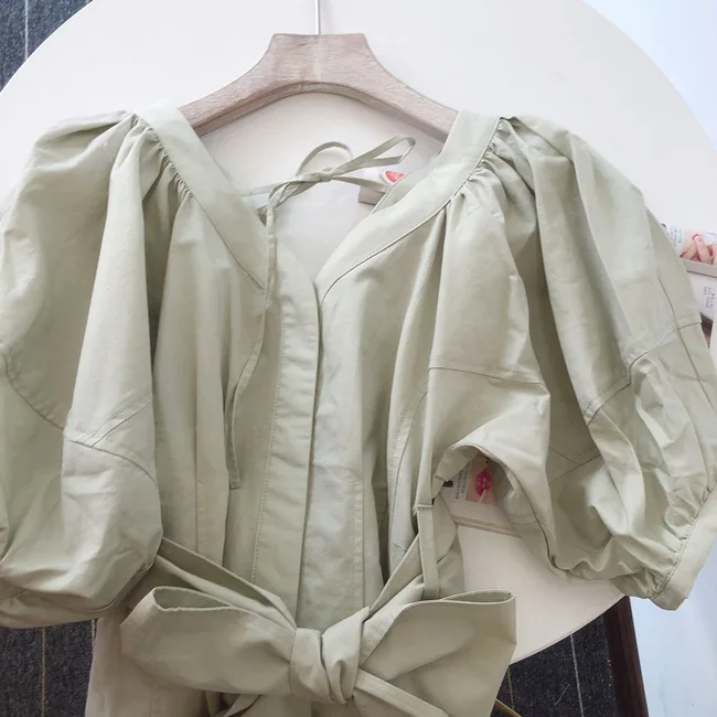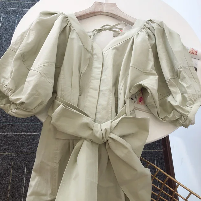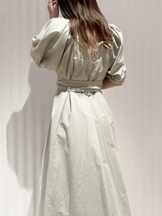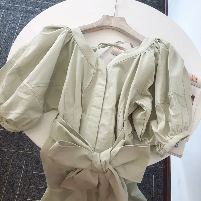 Japanese Sexy Elegant V Neck Woman Dress Design Back Lace-up Slim Waist A Line Vestidos 2022 Summer New Sundress Party Maxi Robe