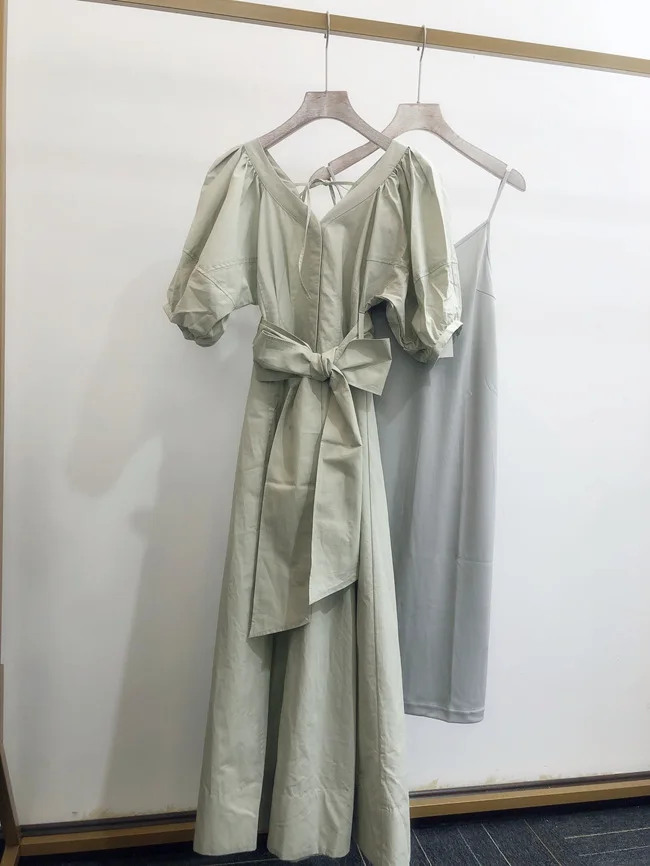 Summer V Neck Sexy Prairie Chic Slip Dress French Style Sweet Retro Slim Waist Vestidos De Mujer Solid All Match Casual Faldas