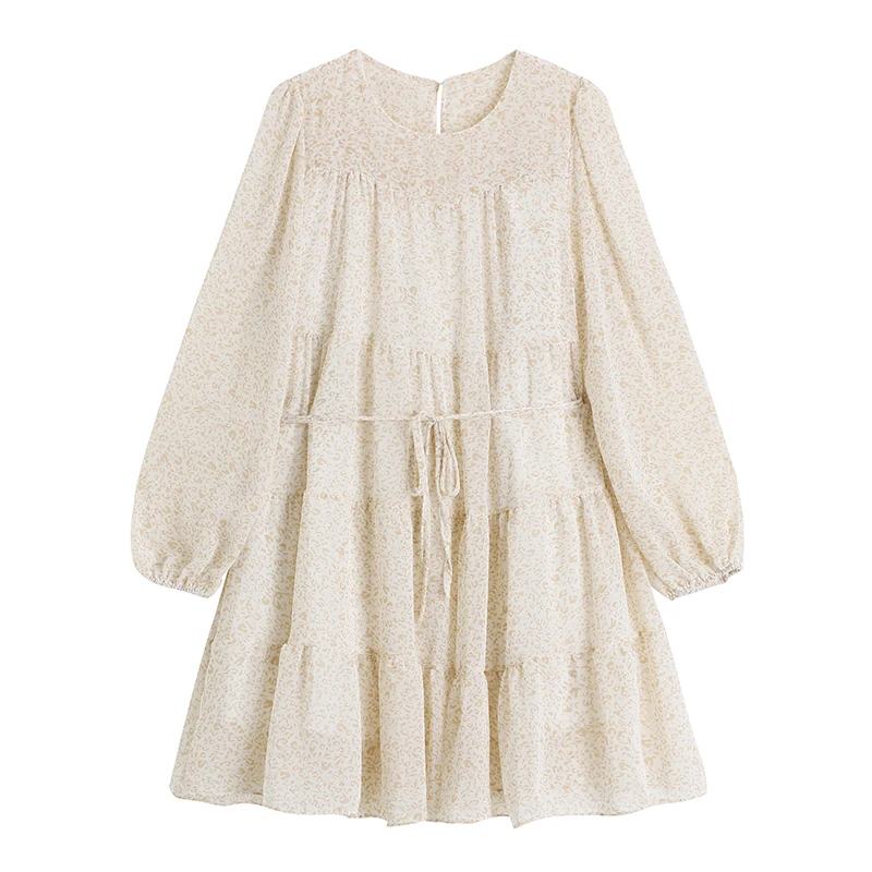 Simple Print Slim Waist Lace Up 2021 Spring Women's Dress Japan Style Sweet Cute All Match Short Vestidos Moda Fresh Loose Robe