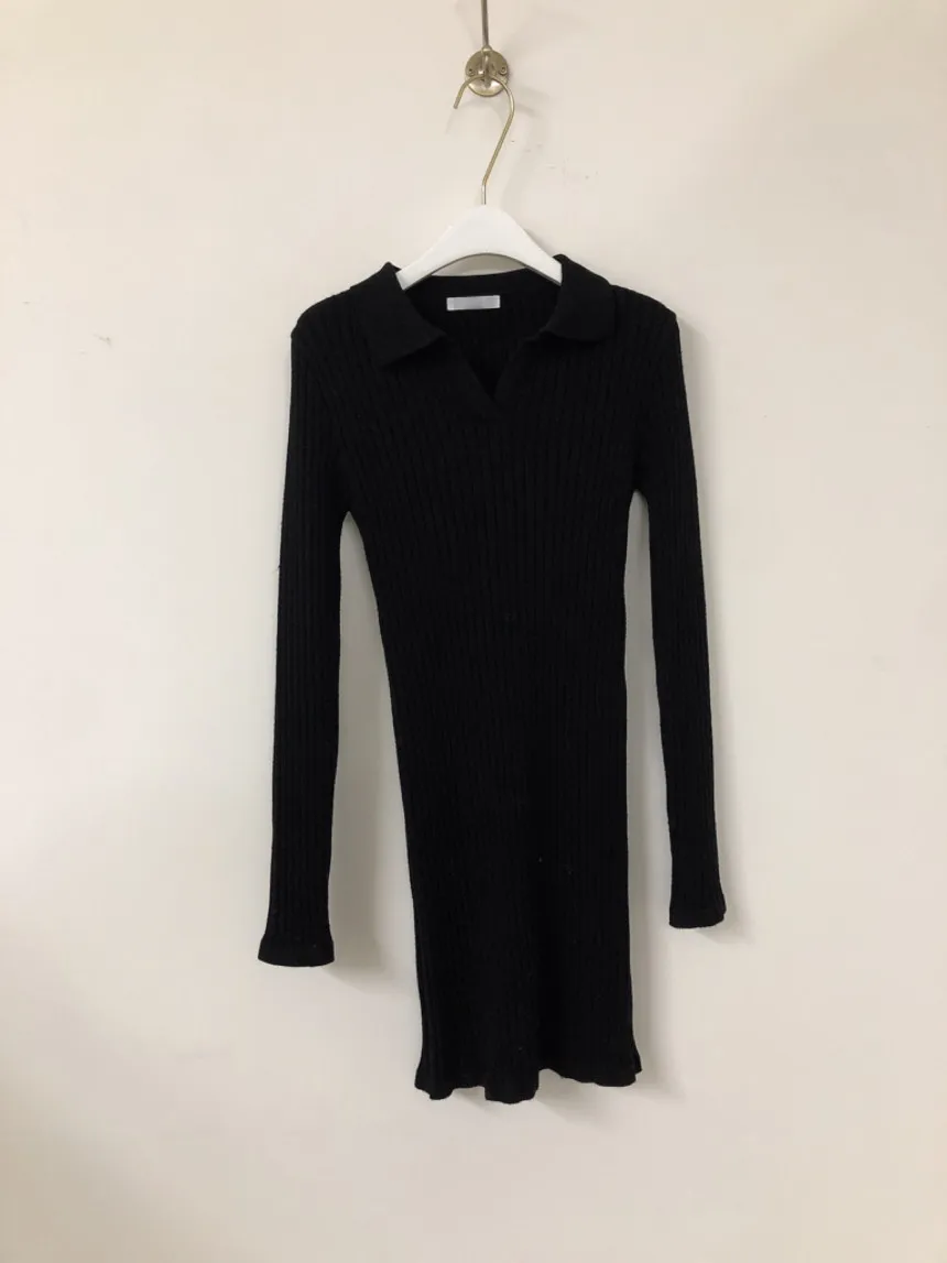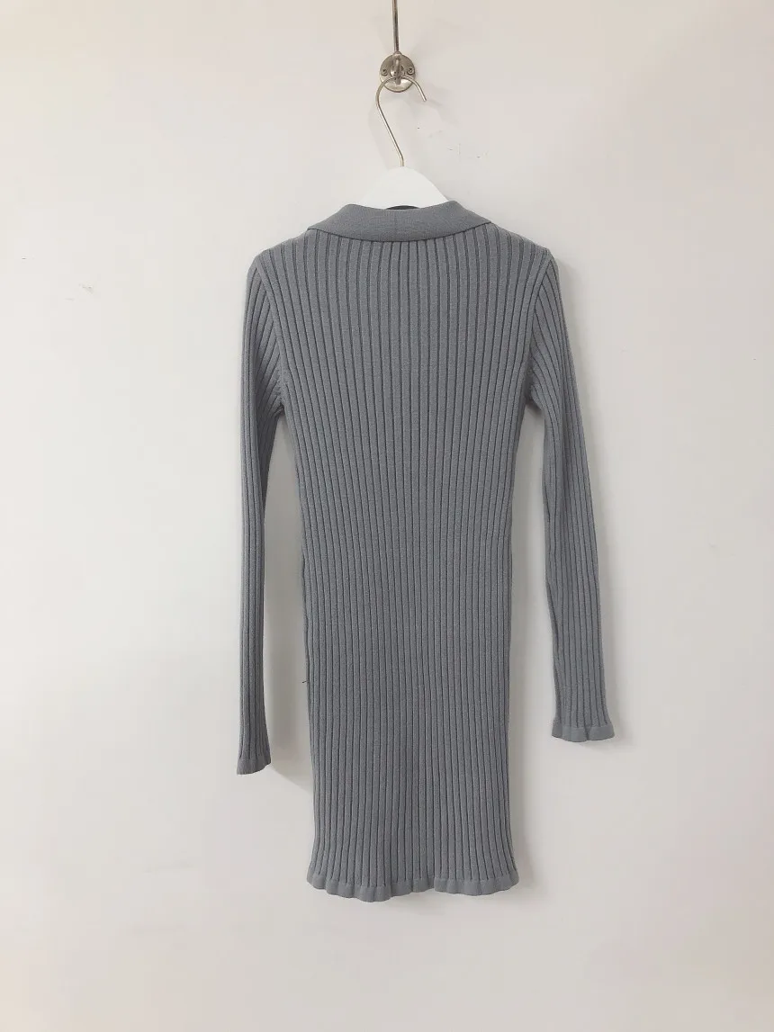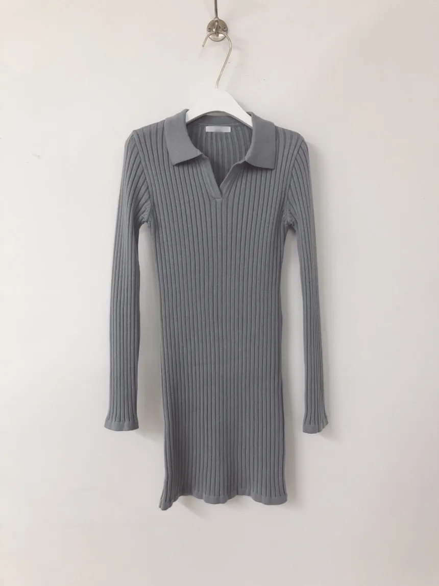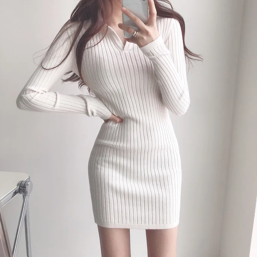 Korean Chic Autumn Simple Slim Waist Solid Knitted Dress Women Bodycon Elegant Casual Vestidos Mujer All Match Fashion Robe