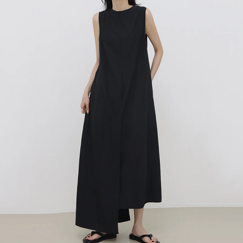 Korean Chic Summer Retro O Neck Loose Woman Dress Irregular Vest Split Casual Vestidos Simple Soft Sleeveless Plus Size Robe