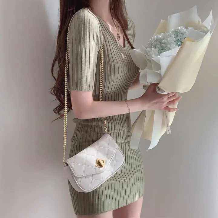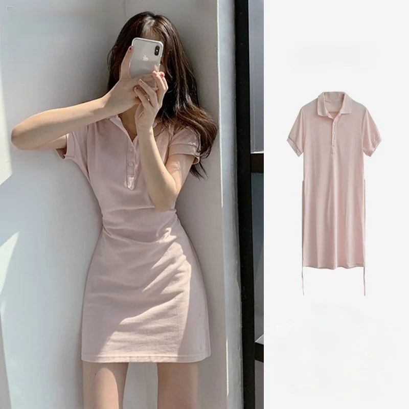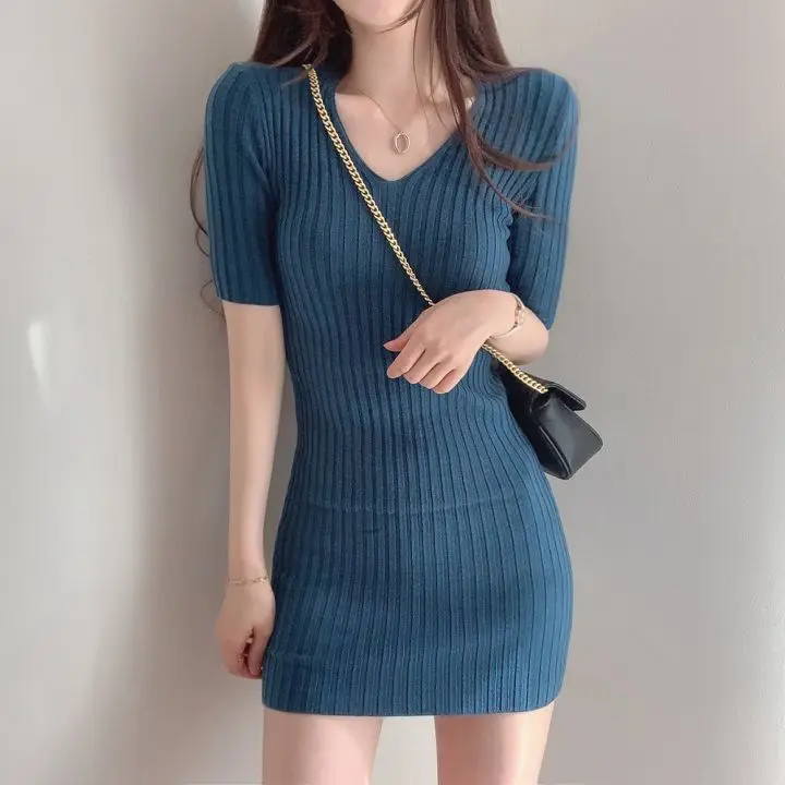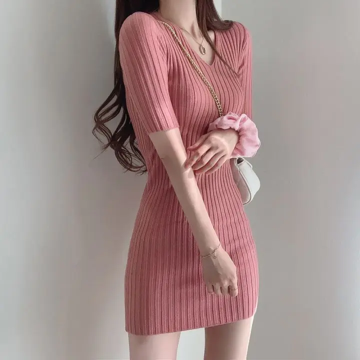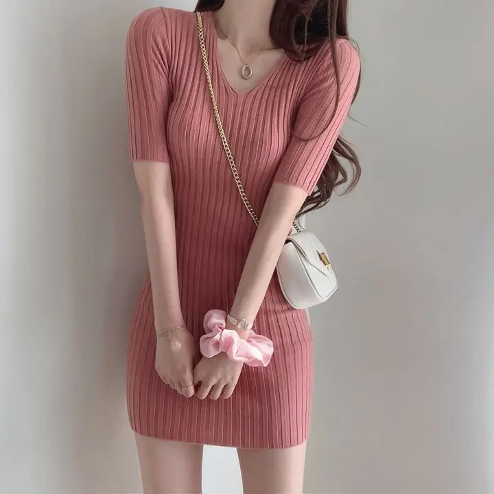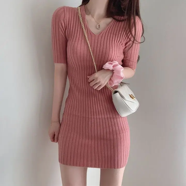 Korean Style Simple Casual Midi Woman Dress Solid 2021 Summer Short Sleeve Robe Elegant Bodycon Sexy S-XL Vestido De Mujer Moda
