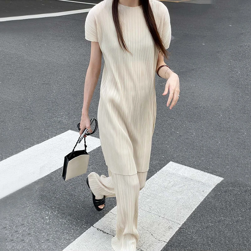 Simple Korean Chic Summer 2021 New Woman Dress Short Sleeve Slim Waist Pleated Dress Vestidos Split Sexy Elegant Ladies Robe