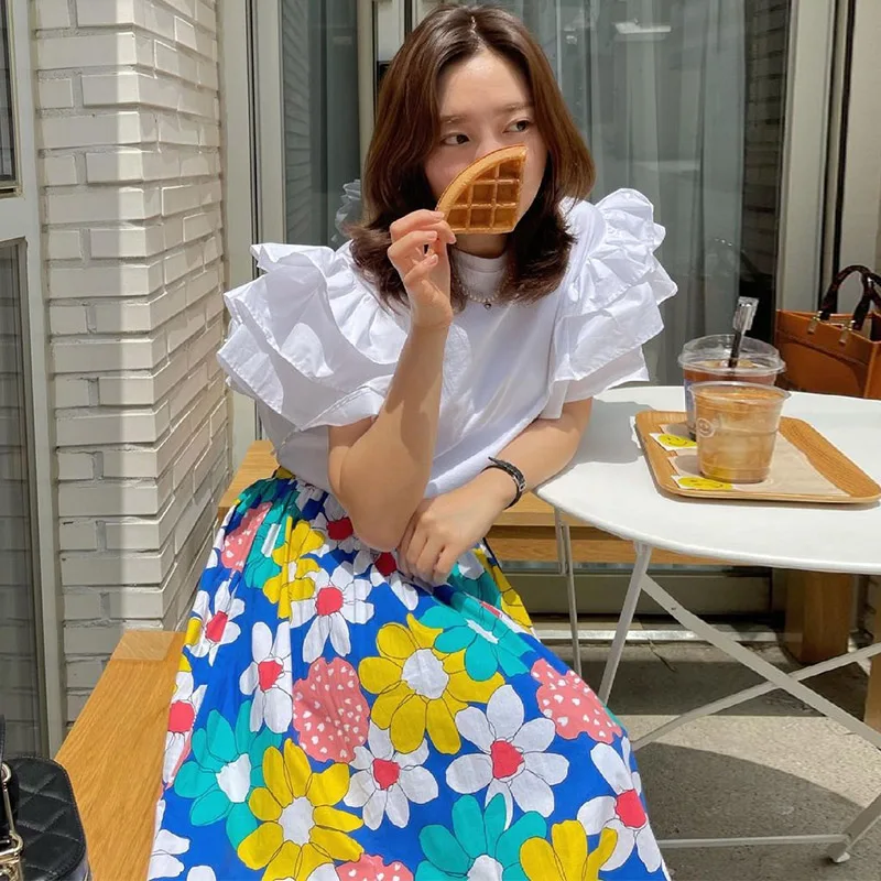 Retro Floral Ruffles Puff Sleeve Dress Women Korean Chic New Summer 2021 Sweet Cute Midi Vestidos Loose Elegant Casual Robe