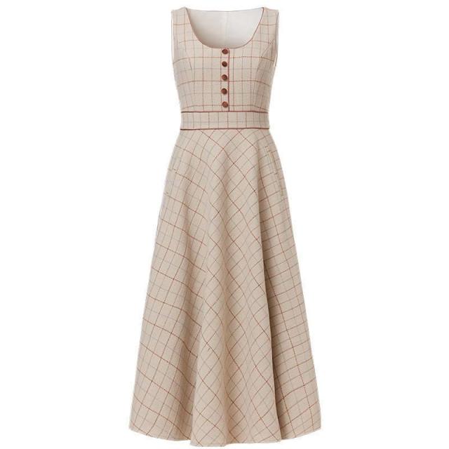 Ladies Winter Retro Suit Short Jacket Plaid Bowknot Double Breasted Top + Waist Strap Dress 2-piece Set