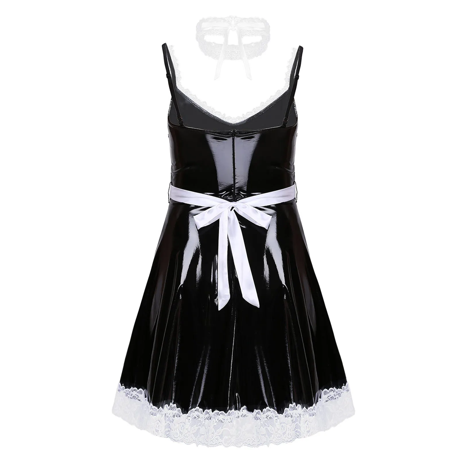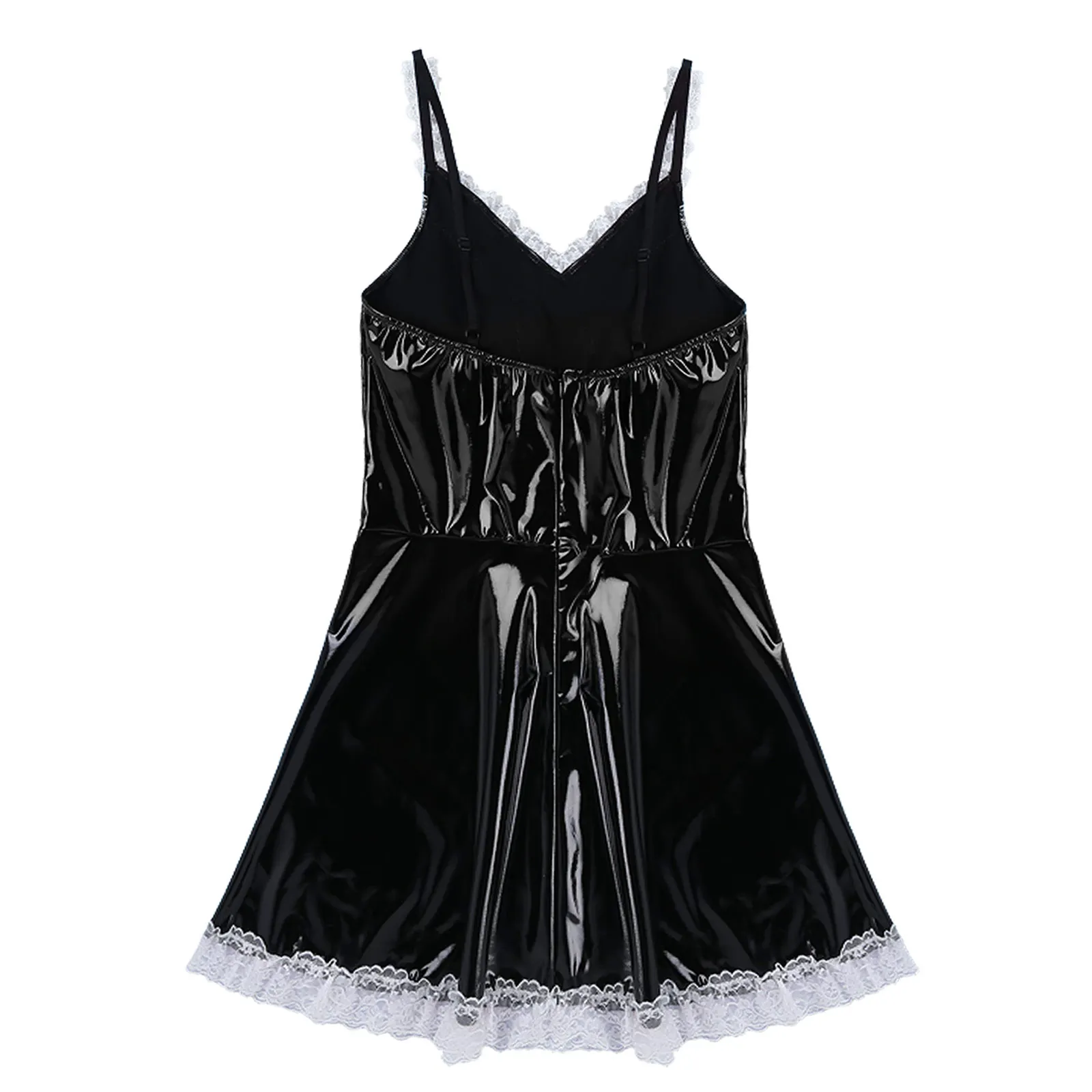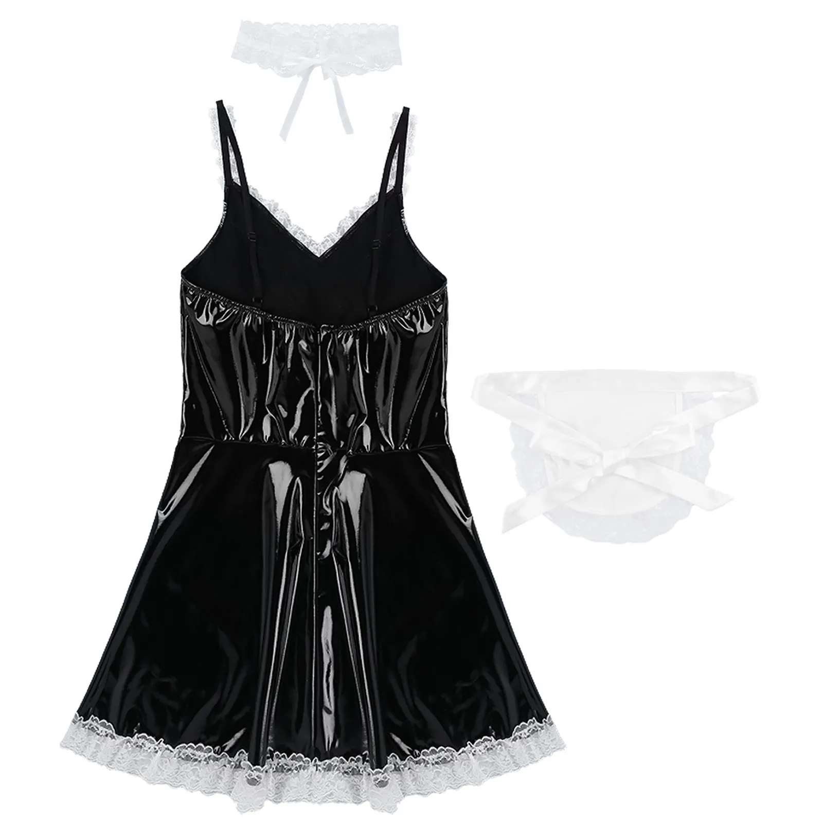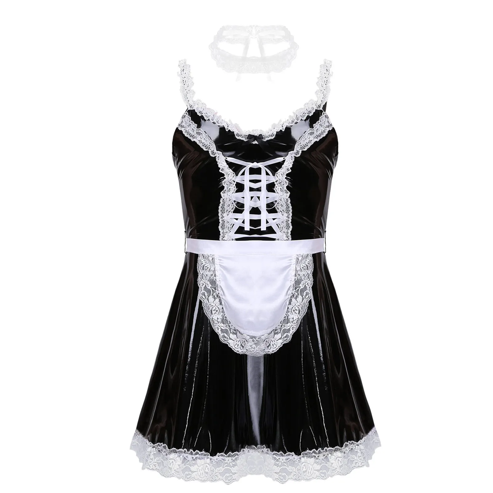 Mens Sissy Patent Leather Maid Dress Cosplay Costume Lingerie.