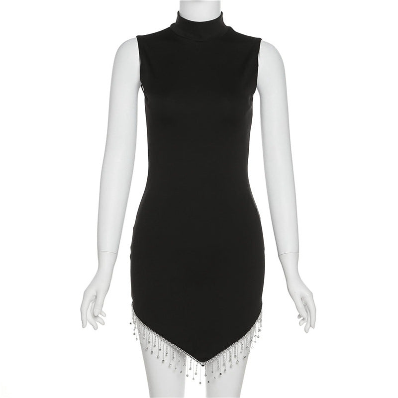New 2022 Tank Strap Middle Neck Casual Evening Party Sexy Backless Women's Clothes Bright Prom Basic Bodycon Mini Dress Vestidos
