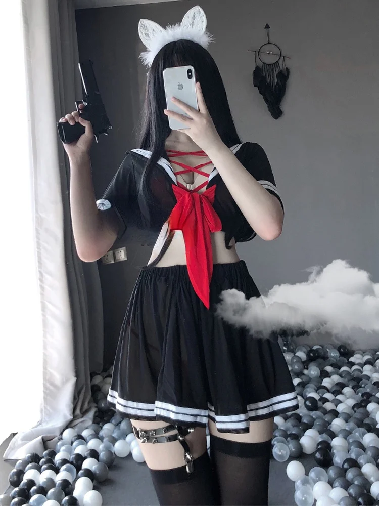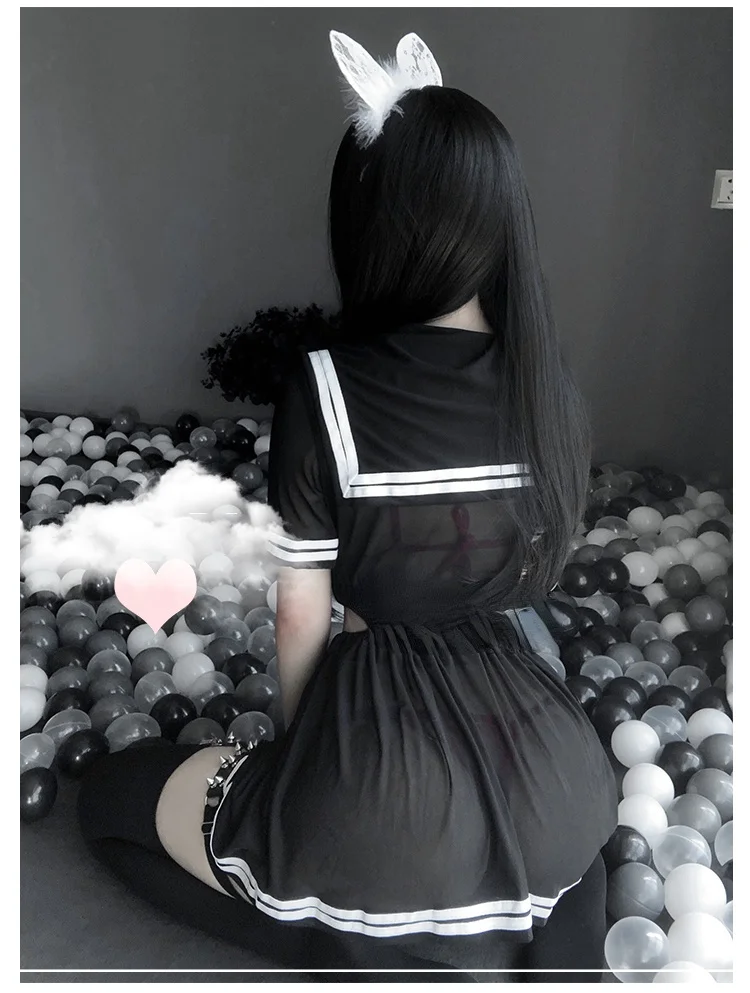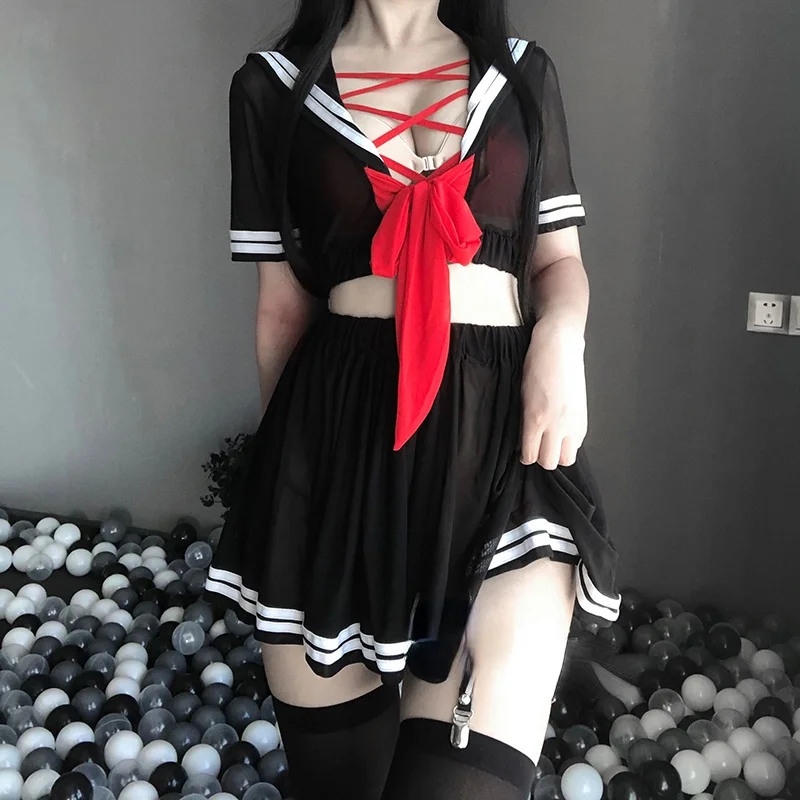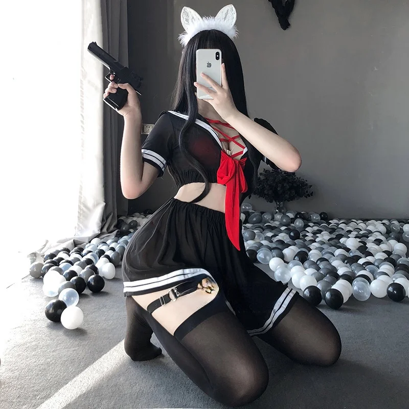 New School Girl Ladies Erotic Dress for Women Soft Fabric Cute Lace Miniskirt Outfit Anime Cosplay Costume Student Black Uniform