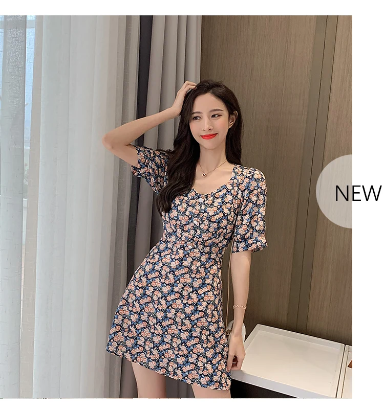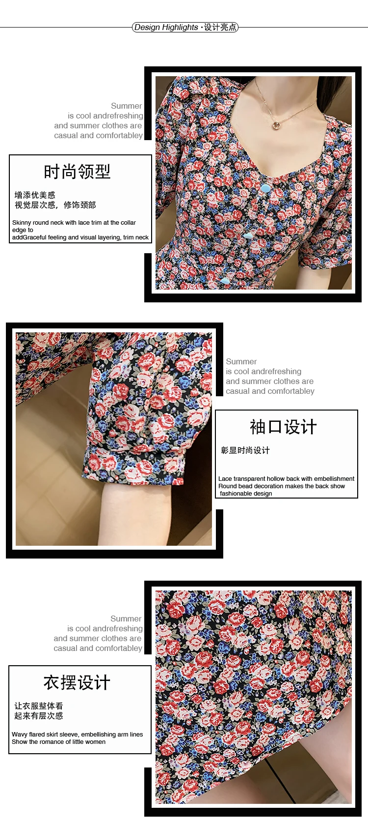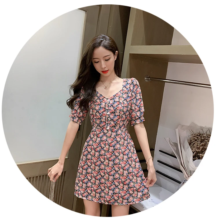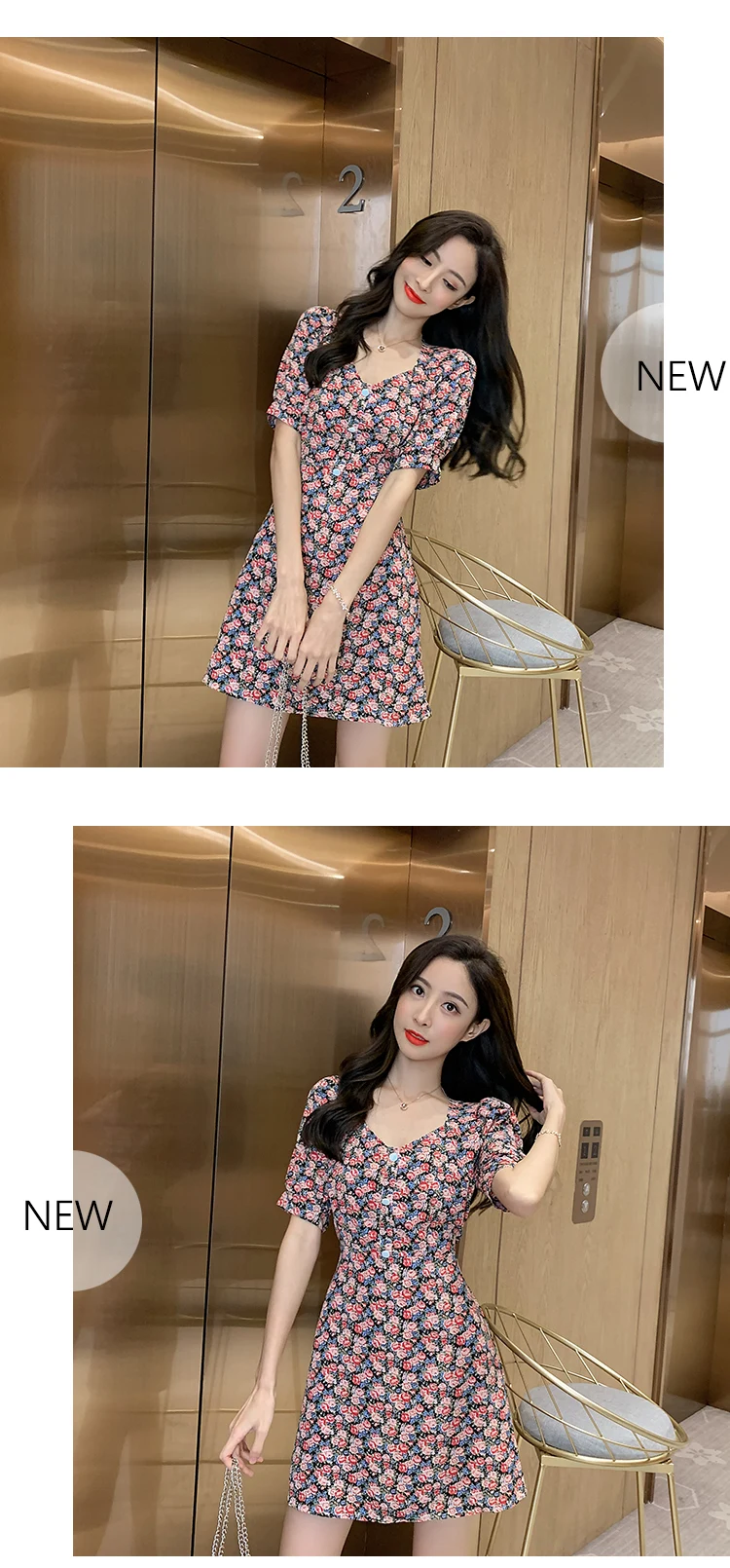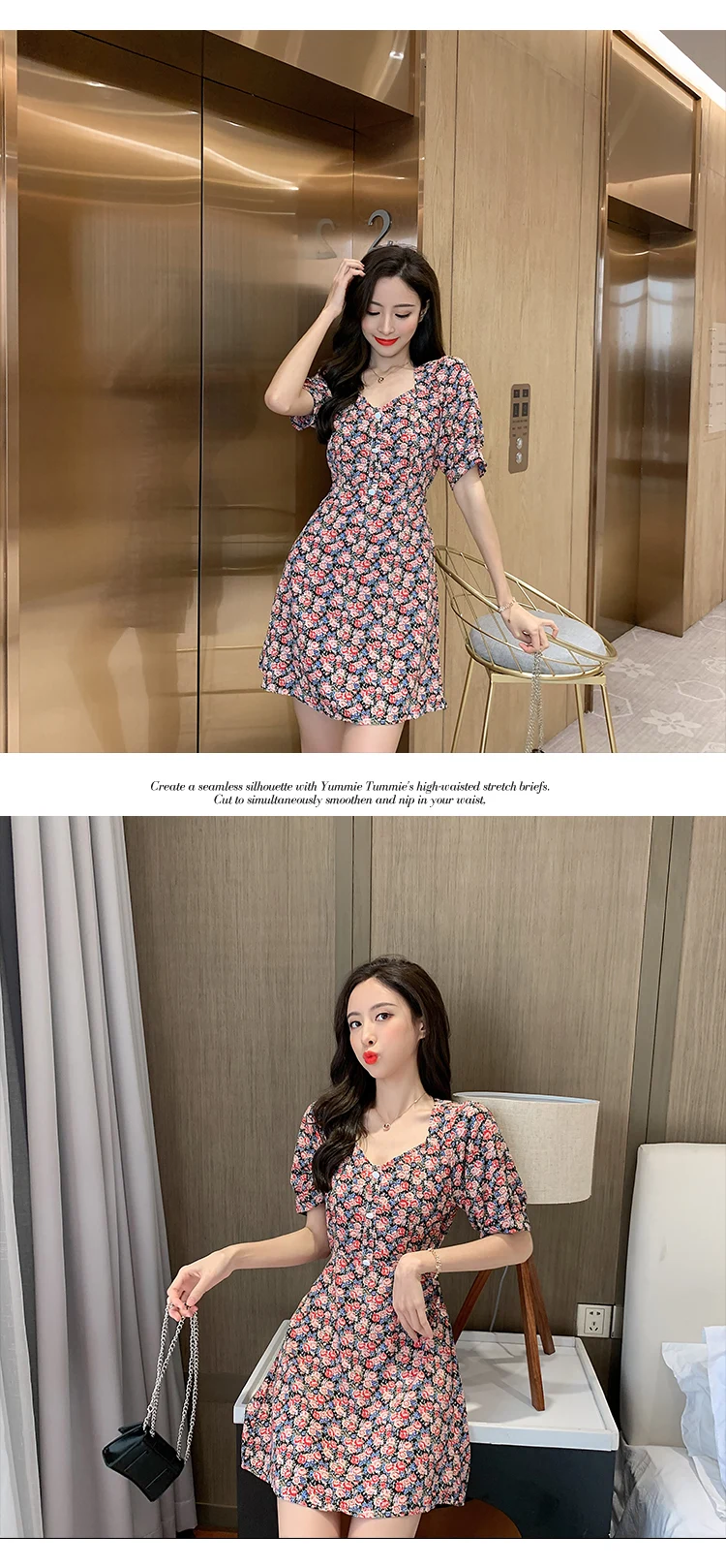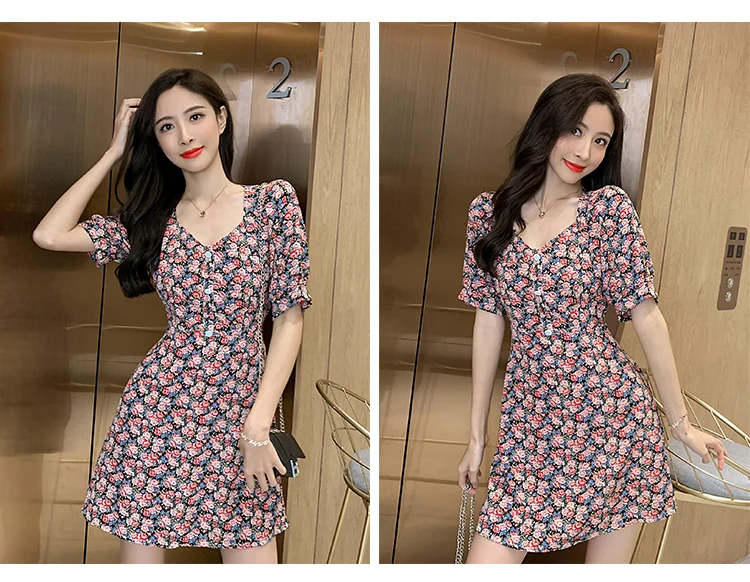 New Women's Short Sleeve Dress Medium Length Fashion Sexy Printing Simple Personality Korean V-Neck Skirt Chiffon Versatile Slim