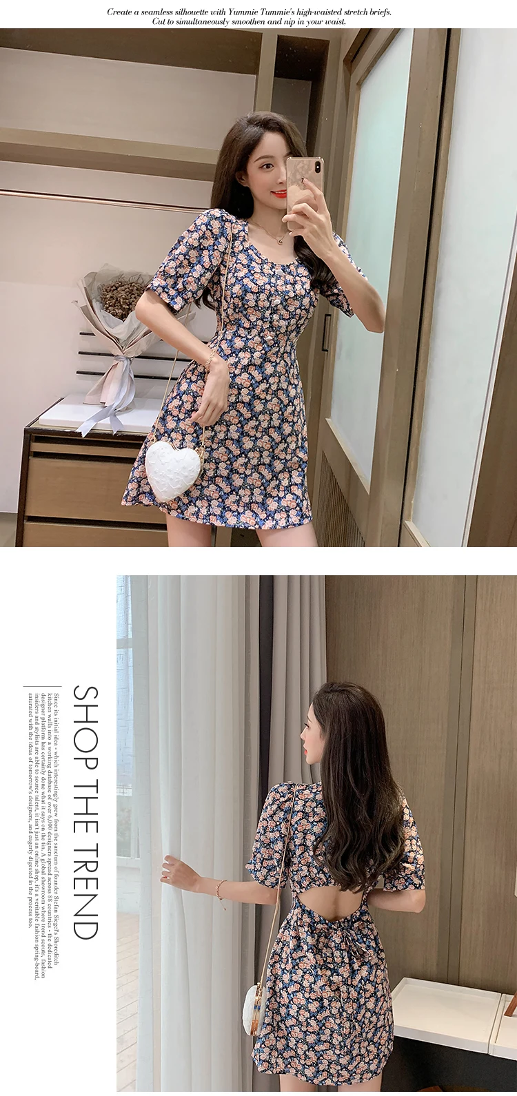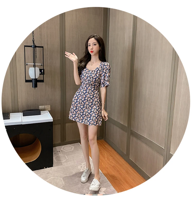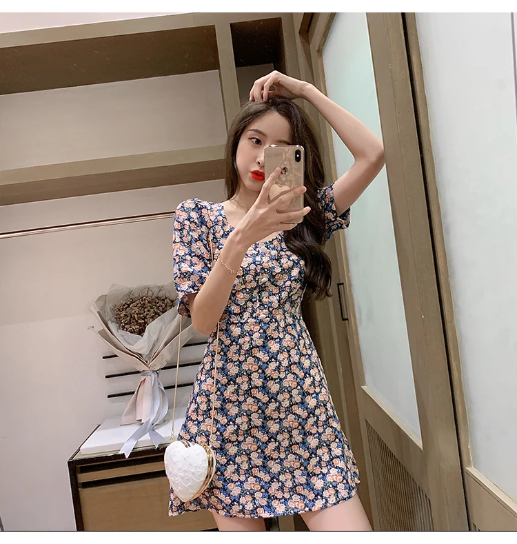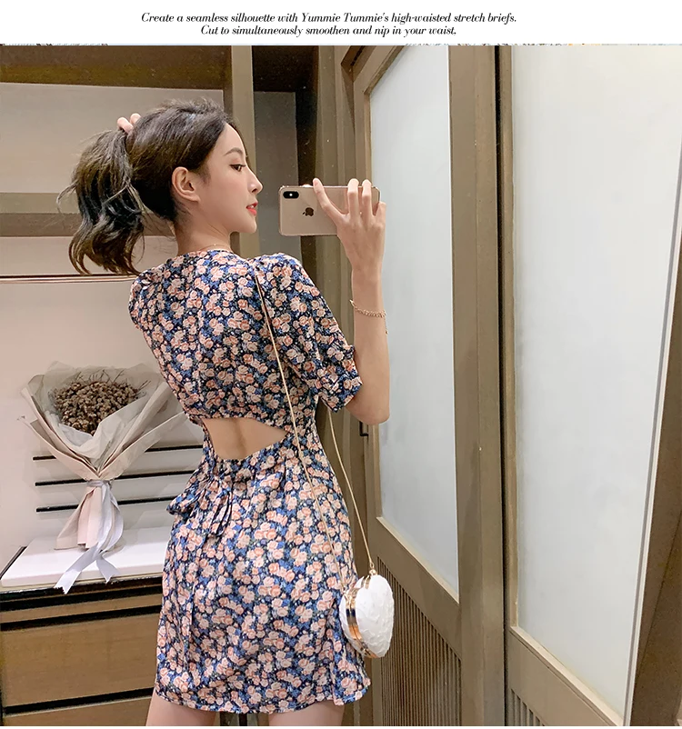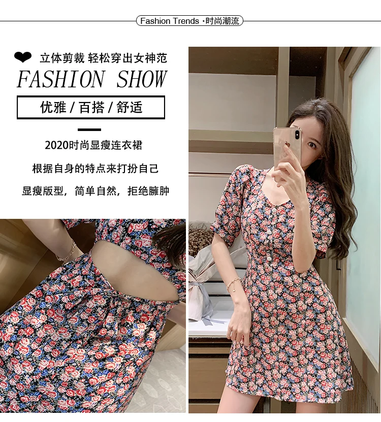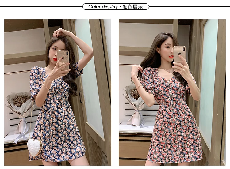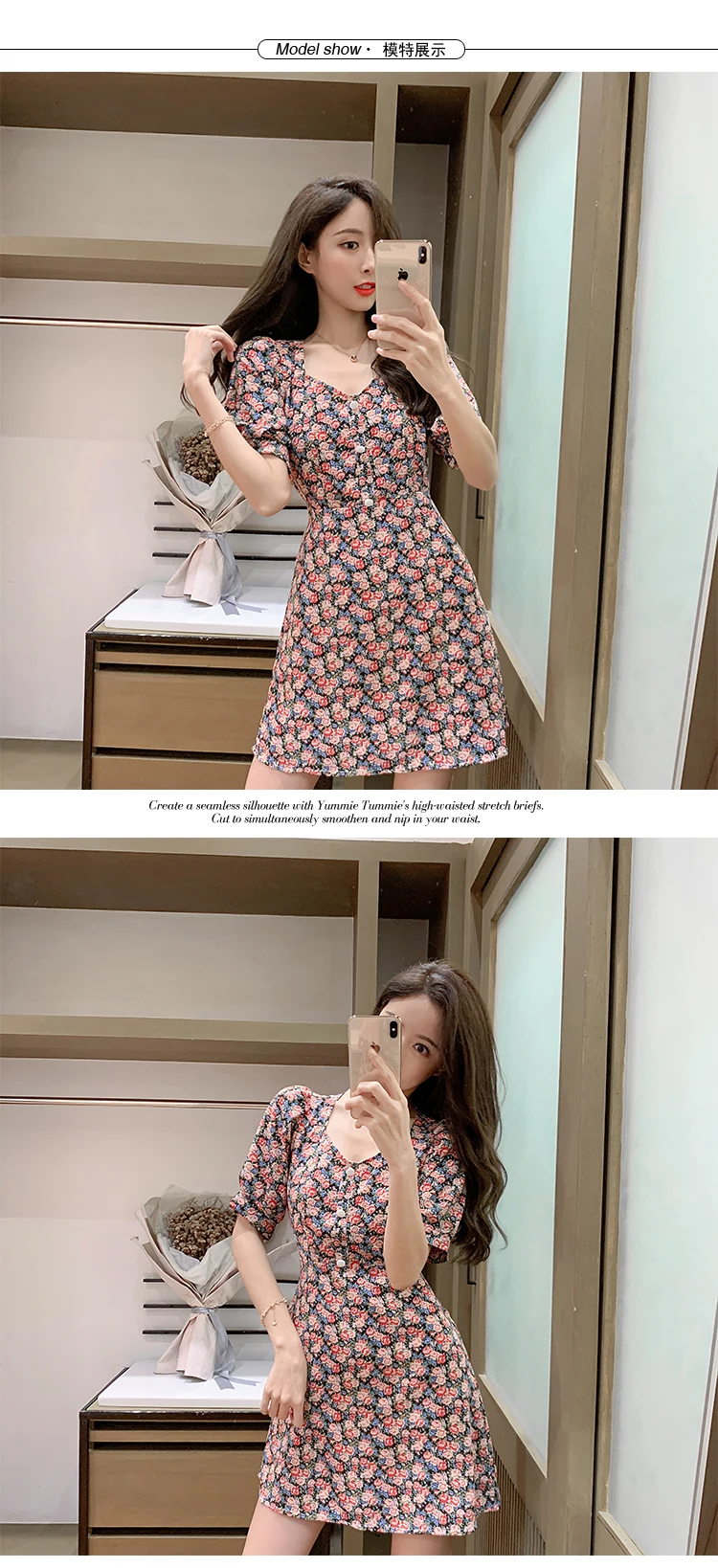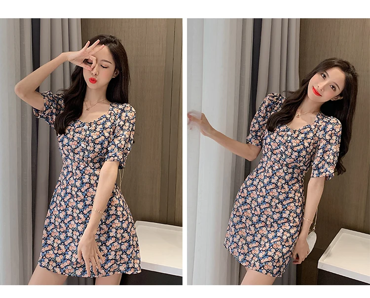 New Women's Short Sleeve Dress Medium Length Fashion Sexy Printing Simple Personality Korean V-Neck Skirt Chiffon Versatile Slim