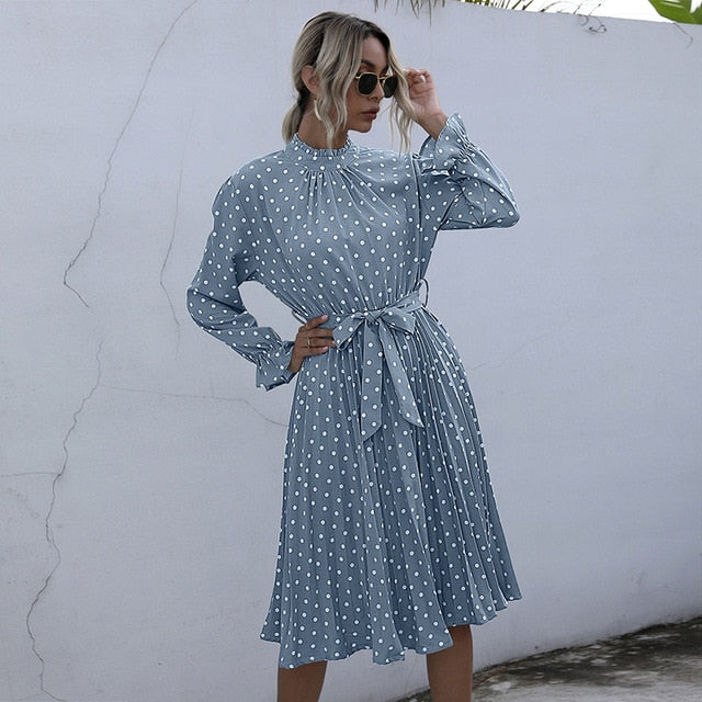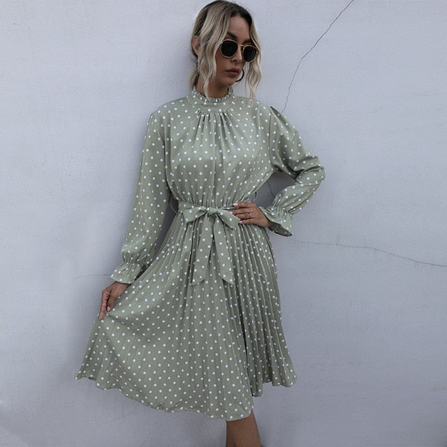 Polka Dot Print Dress Women Casual Half Turtleneck Butterfly Sleeve Autumn Winter Slim Bandage Dress For Women 2021 New Fashion