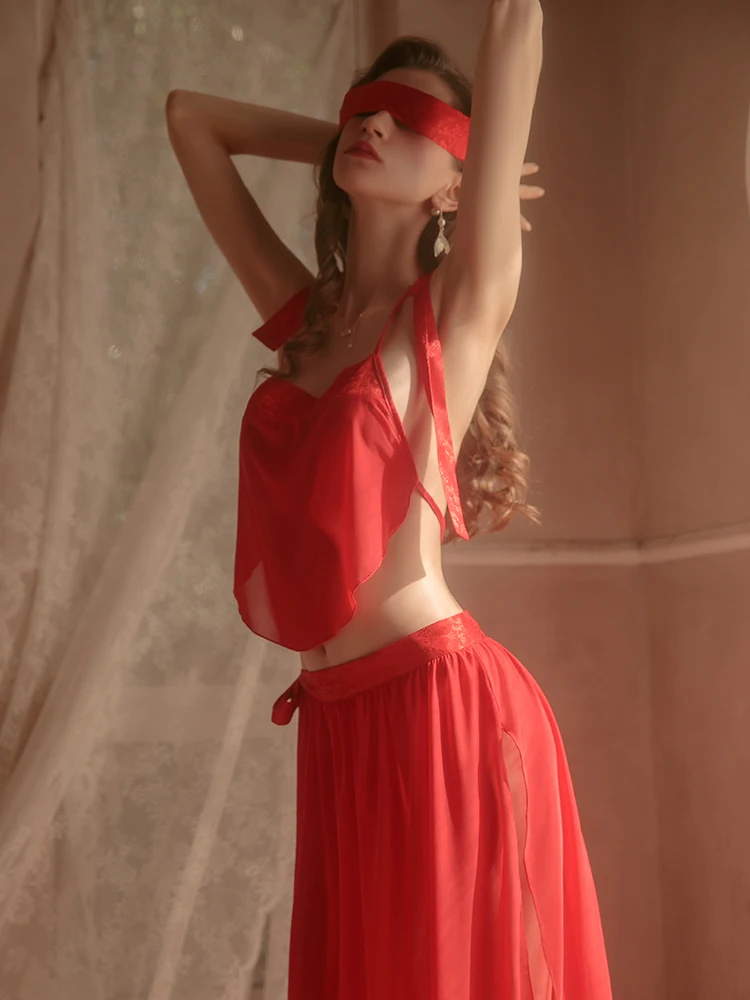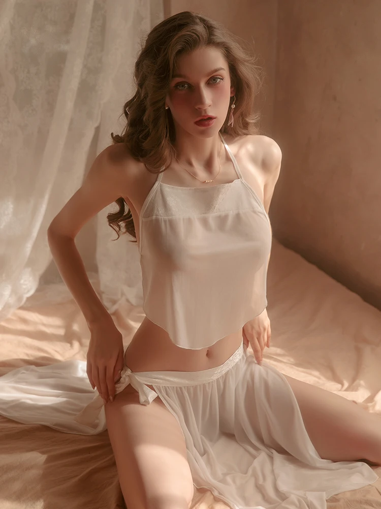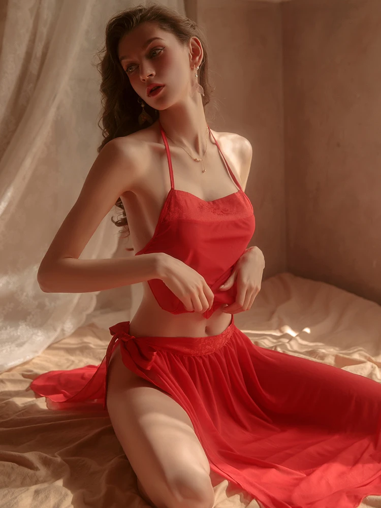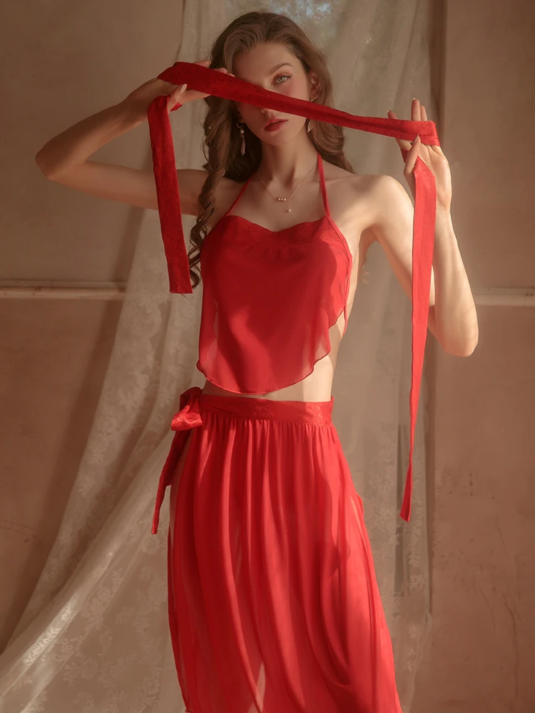 Sexy Lingerie Female Mesh Temptation Bellyband Lace HomeDress Perspective Bathrobe Three-Piece Bra Set And Robe