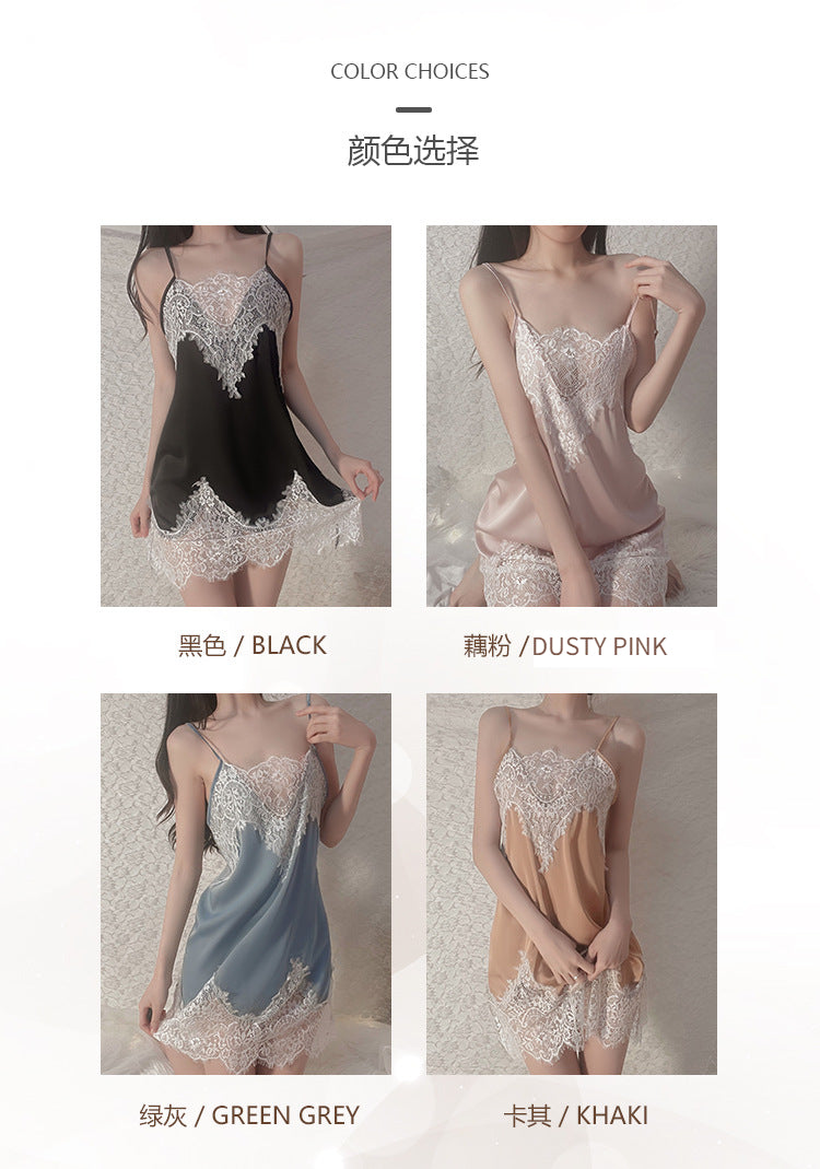 Sexy Woman Tulle Slip Skirt Sweet Satin Lace Nightdress Thong Set Girls Deep V Backless Nightgowns Femme Sexy Nightwear