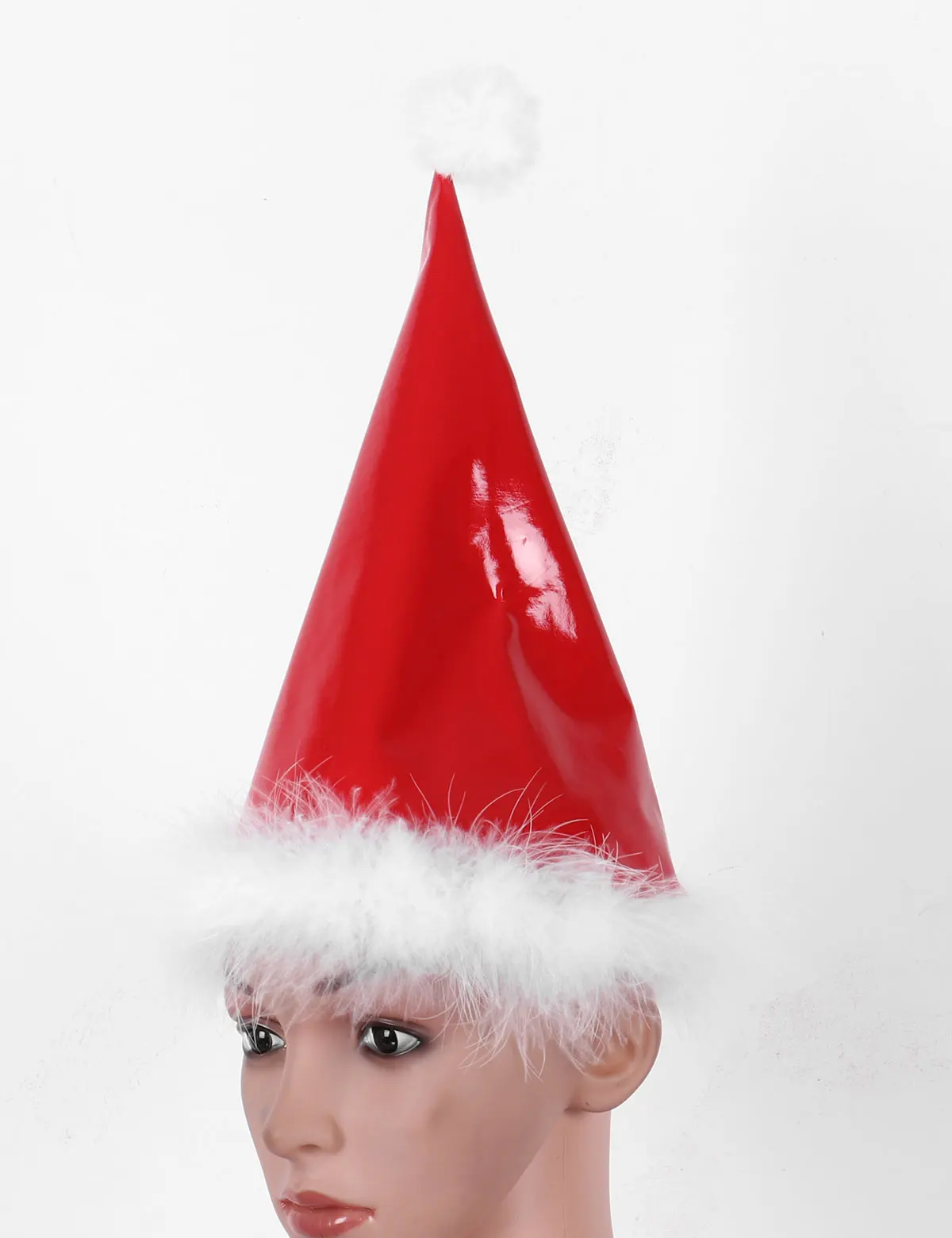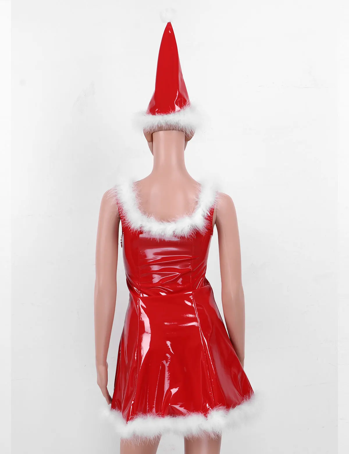Women’s Christmas fancy dress Mrs Santa Claus Xmas party costume dress with hat, wet look appearance.