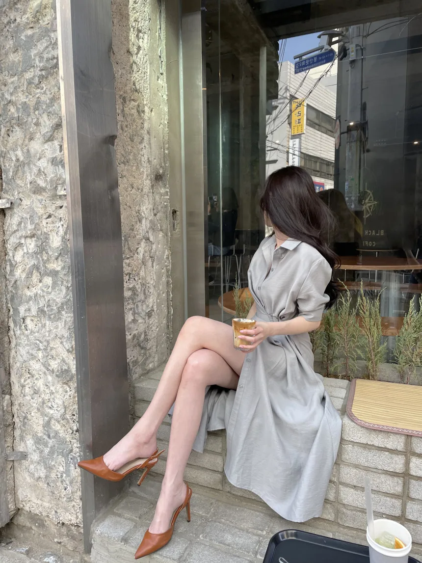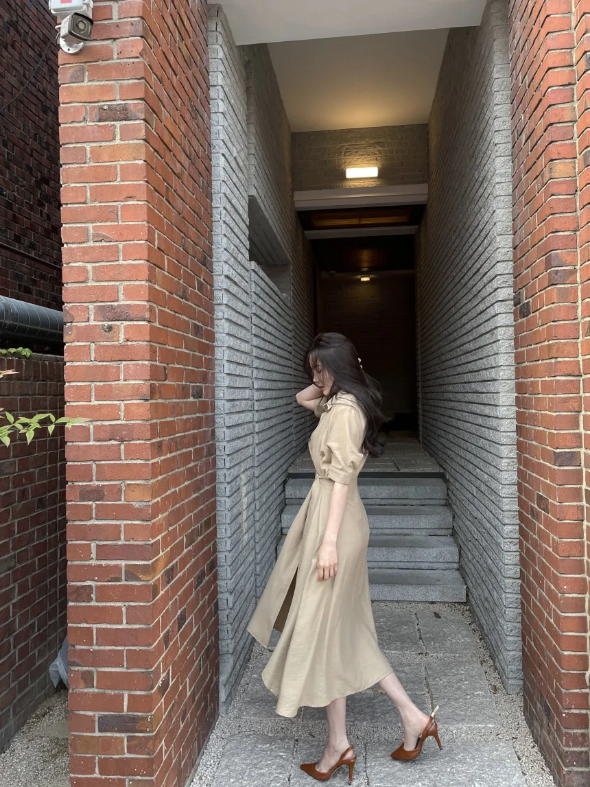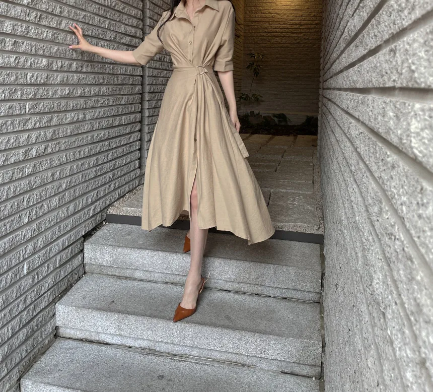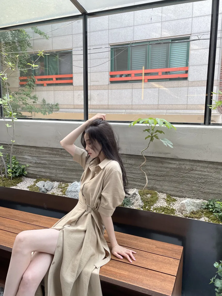 Simple Korean Chic Summer 2022 New Woman Dress Short Sleeve Slim Waist Pleated Dress Vestidos Split Sexy Elegant Ladies Robe